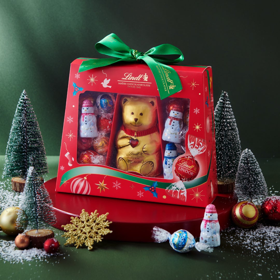 リンツを代表する「リンドール」のミルク、ホワイト、ダークといった王道フレーバーに、ミニリンツテディフレンズを詰め合わせた見た目にも楽しいギフトボックス。5つのサイズからお選びいただけるため、クリスマスパーティーなどの大人数で集まるシーンや、大切な家族・友達など用途にあわせてプレゼントすることが可能です。