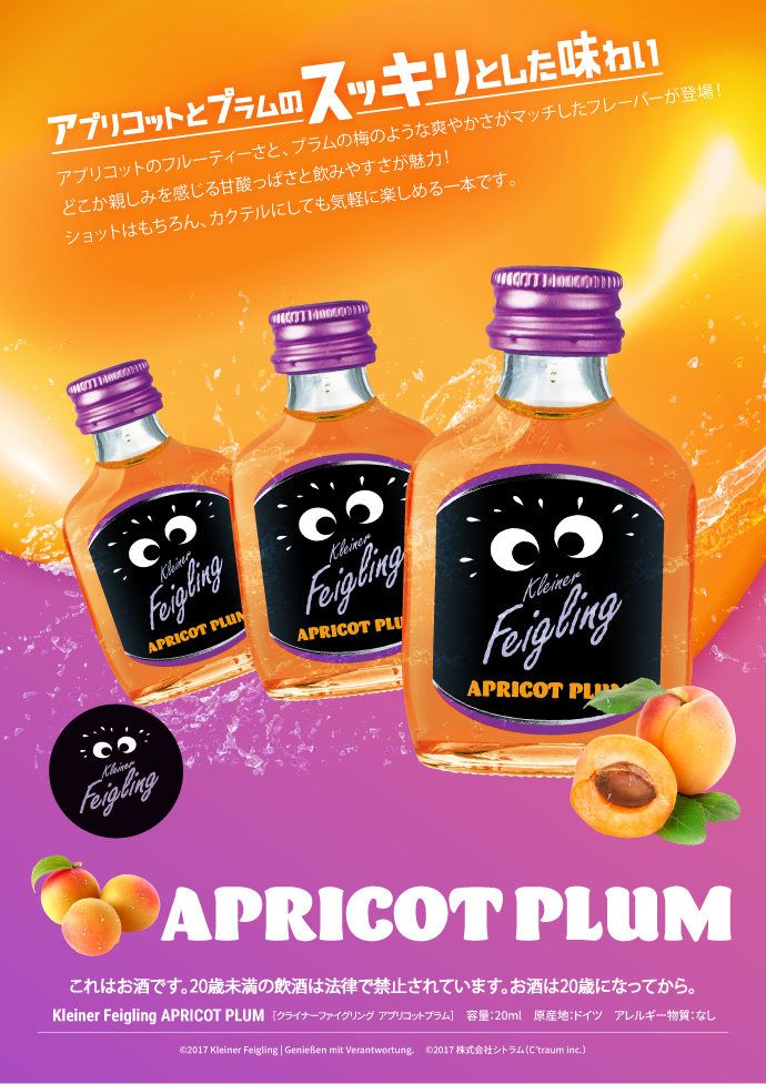 この度、販売を開始するのはアプリコットのフルーティーさと、プラムの梅のような爽やかさがマッチした「Kleiner Feigling APRICOT PLUM(クライナーファイグリング アプリコットプラム)」です。