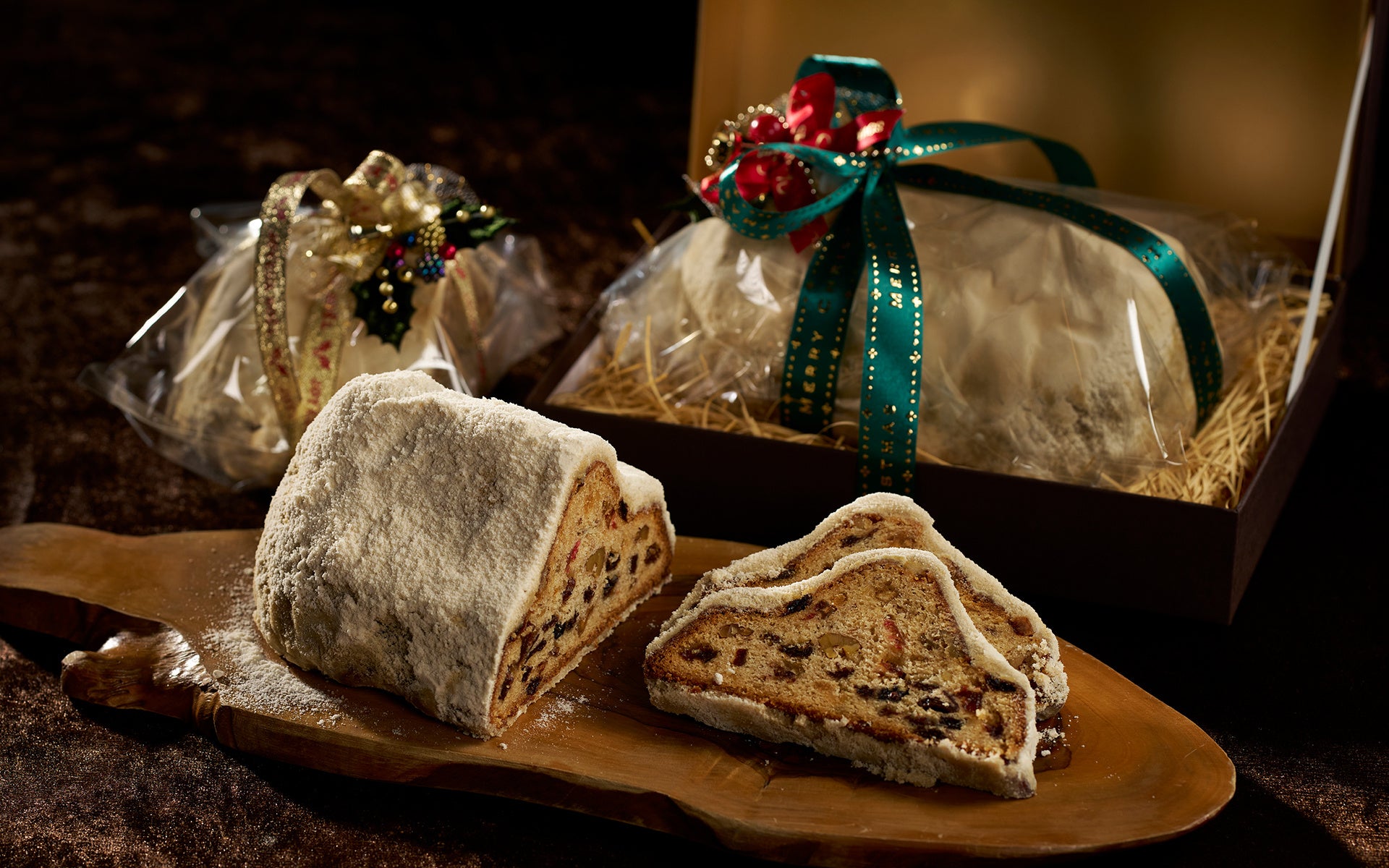1年間ラム酒に漬け込んだドライフルーツが芳醇な香りを放つ、穂乃華自慢のシュトーレン。口どけの良い生地に、まろやかな甘みのきび砂糖と和三盆糖をまぶし、奥行きのある味わいに仕上げました。クリスマスシーズンを彩る、高級感あふれる一品です。