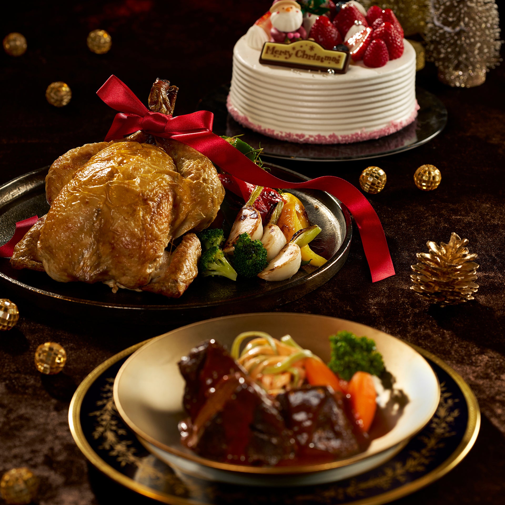 雛鳥をじっくりとローストし、しっとりジューシーに焼き上げたロティサリーチキンと、ホテルオリジナルのビーフシチュー、さらに人気のストロベリーショートを組み合わせたスペシャルセット。ご家庭でもホテルメイドの贅沢な味わいを堪能でき、大切な方と過ごすクリスマスの食卓を華やかに彩ります。