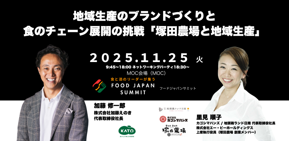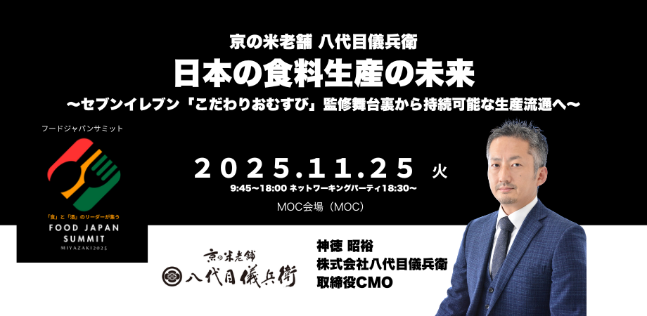 食と酒のリーダーたちが地方に集い、共創によって新たな産業モデルを生み出すことを目的としています。本サミットでは、「地域発ブランドの世界展開」「食の未来を支えるテクノロジーと人材」「関係人口づくり」など、日本の食産業を次のステージへと導く具体的なアクションが議論・発信されます。