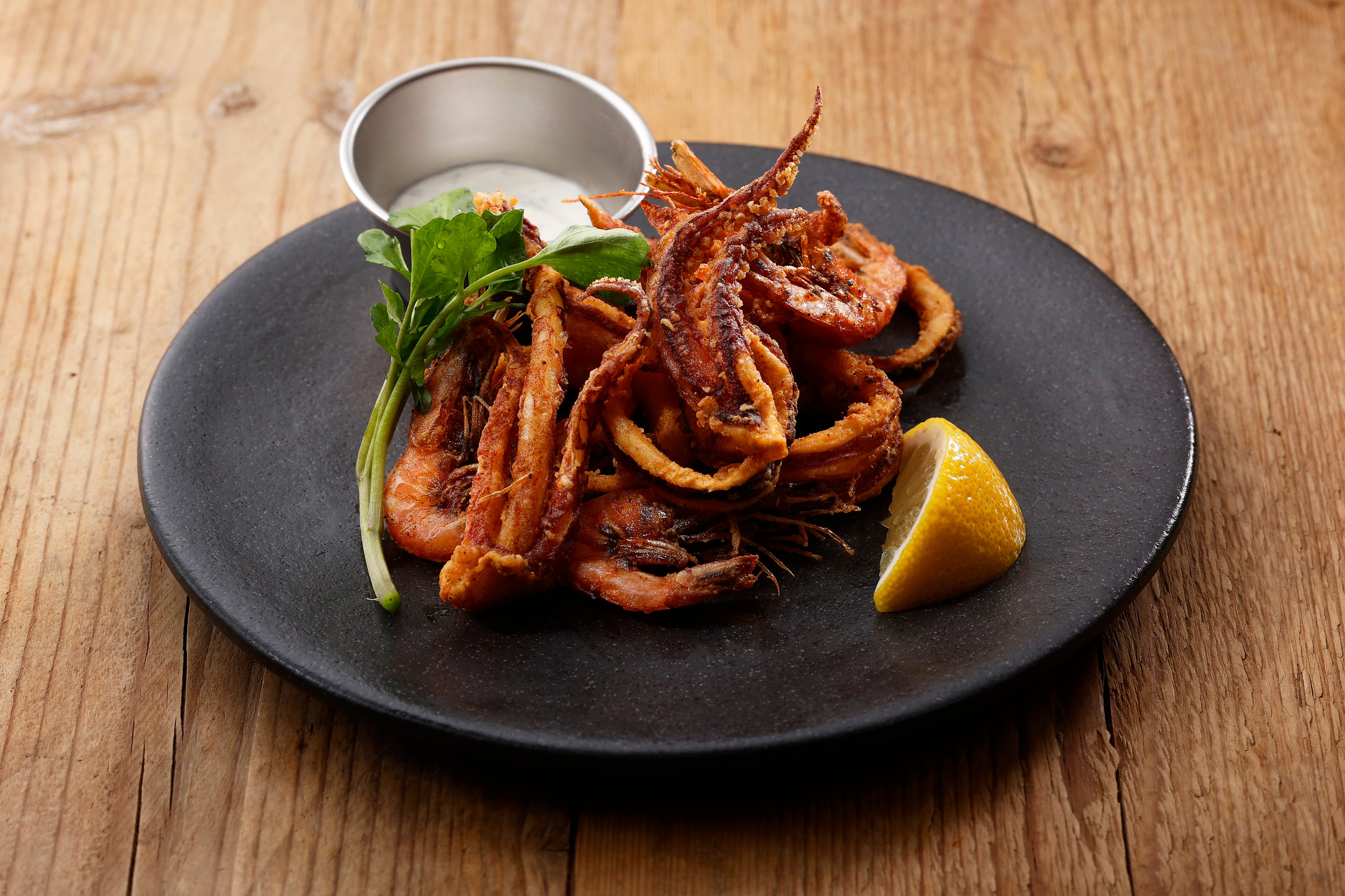 カラマリ(イカ)のフリットと共にヨーグルトソースにつけてお召し上がりください。
