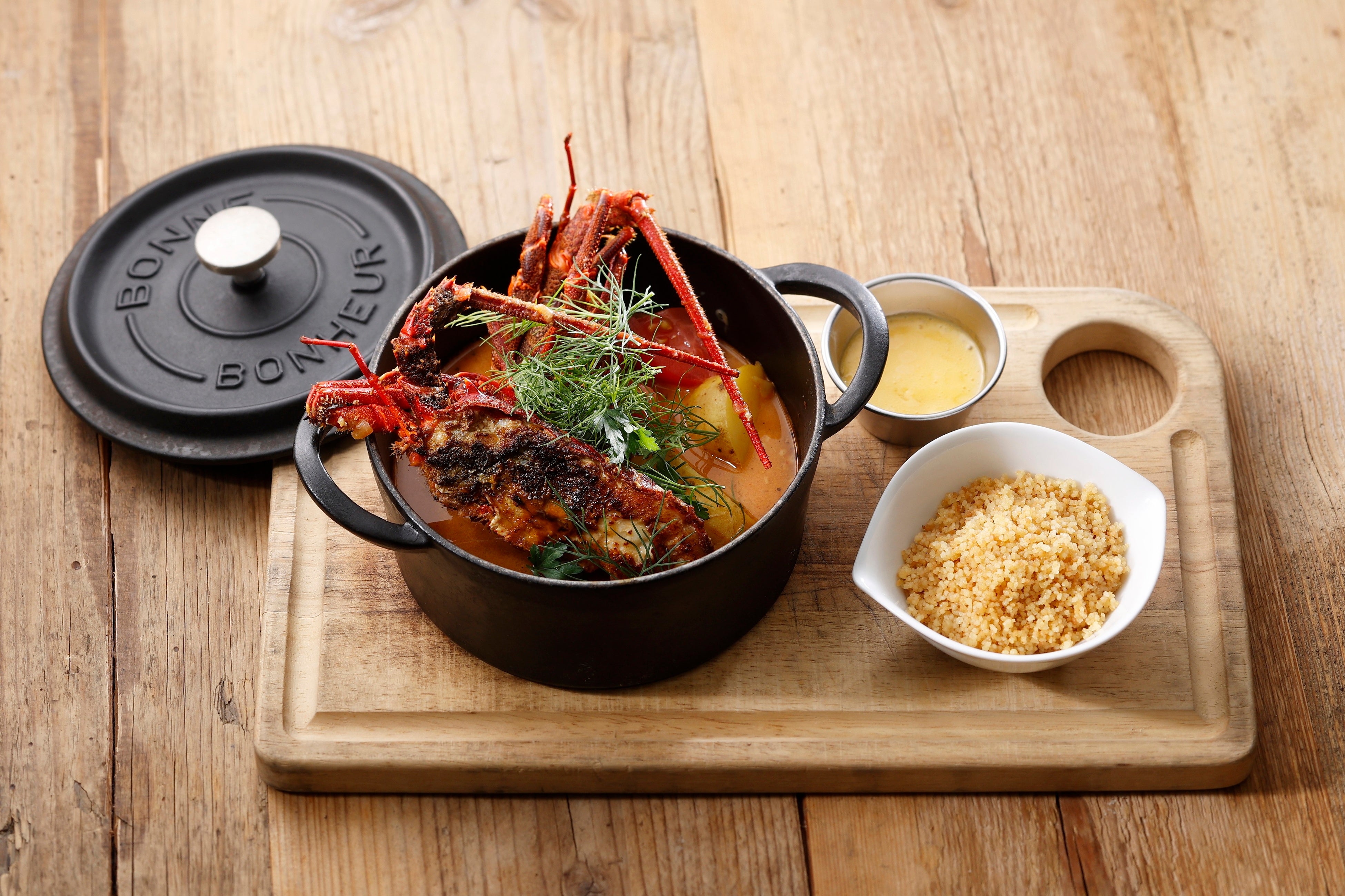 ガーリックトマトスープで具材を煮込み、ハーブでアクセントを加えたブイヤベースです。添えているクスクスや自家製パンとお召し上がりいただくのもおすすめです。