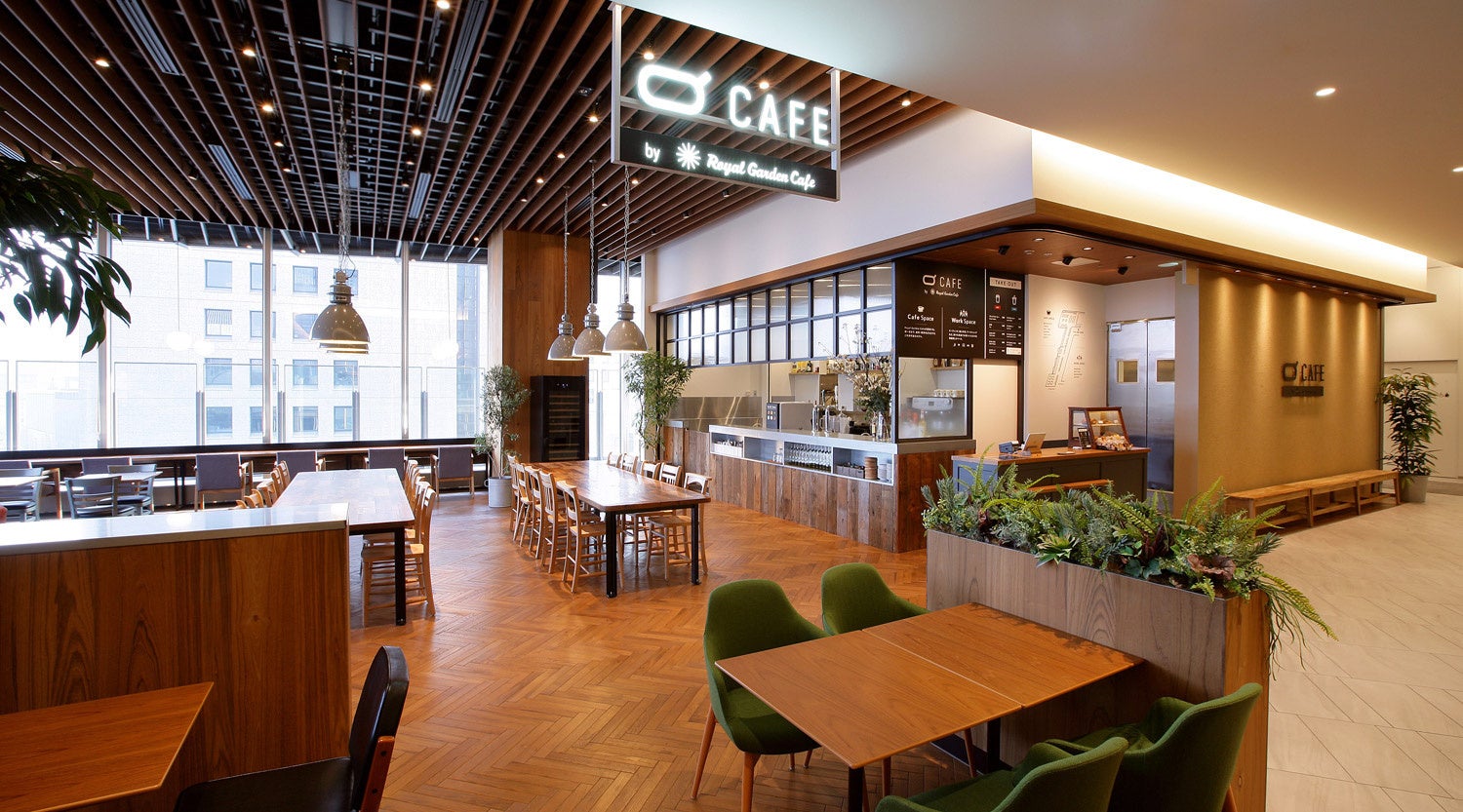 Royal Garden Cafe(ロイヤルガーデンカフェ)は、『サステナブルコミュニティ』をブランドコンセプトに掲げ、”地域の皆様になくてはならないお店”として、持続的な街のコミュニティ基盤となる店舗づくりを目指しています。木目を基調としたインテリアとグリーンに囲まれた空間が特徴で、日常のランチやディナー、カフェタイムはもちろん、10名様から100名様程度のパーティーまで、幅広いシーンに対応可能です。昼は自然光に包まれた明るい雰囲気が広がり、夜はやわらかな照明が灯ることで落ち着いた空間へと変わるなど、時間帯ごとに違った雰囲気を楽しめるのも魅力です。