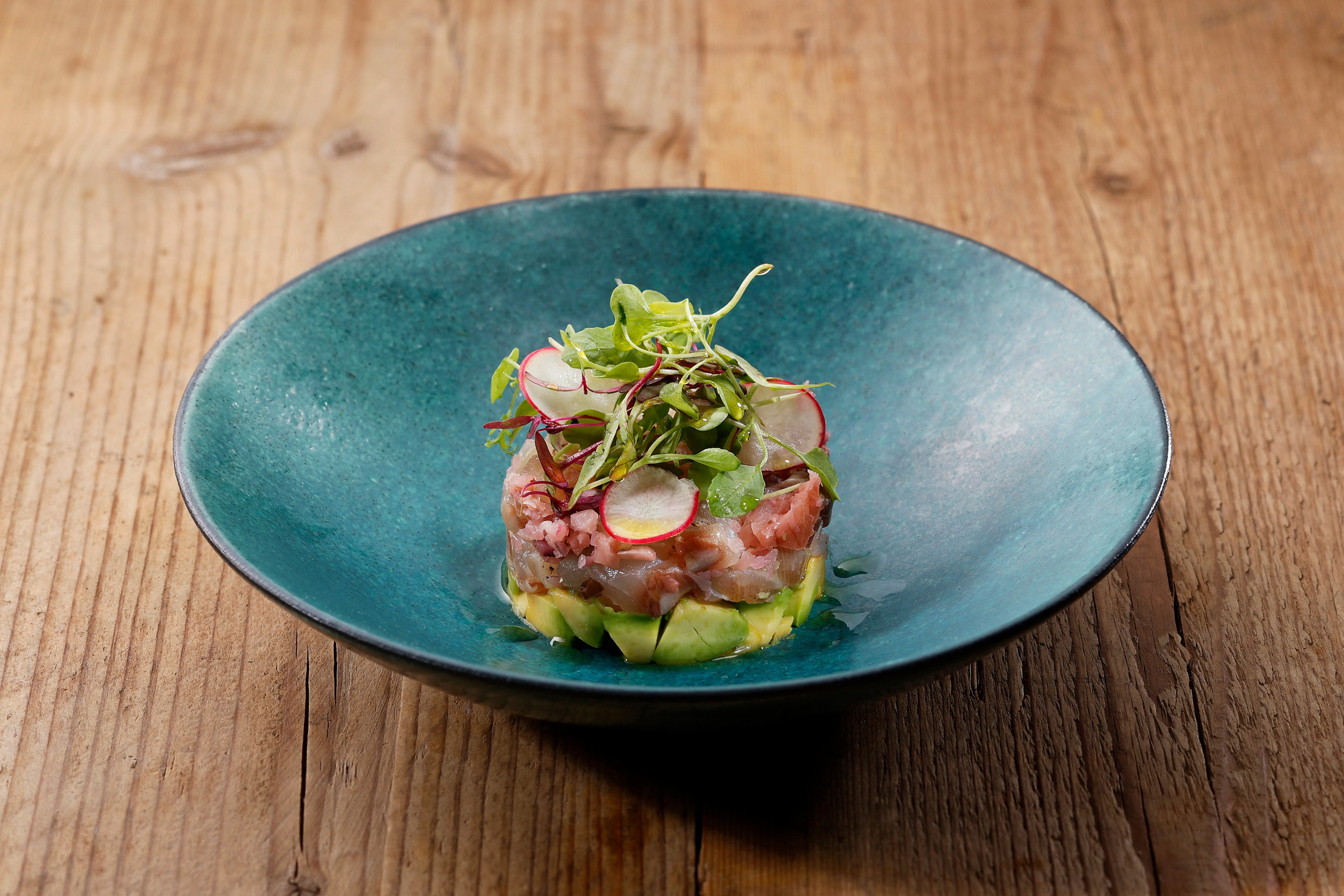 季節ごとに変わる鮮魚をアボカドと合わせた一品。鮮魚のマリネはコックが手で仕込み、塩や砂糖に加え、これまで活用されていなかった抽出後のコーヒー粉を使用。これにより、臭みを抑え旨味を引き出しています。食材を最後まで大切に活かし、美味しく提供したいというコックの想いがこもったサステナブルな一品です。
