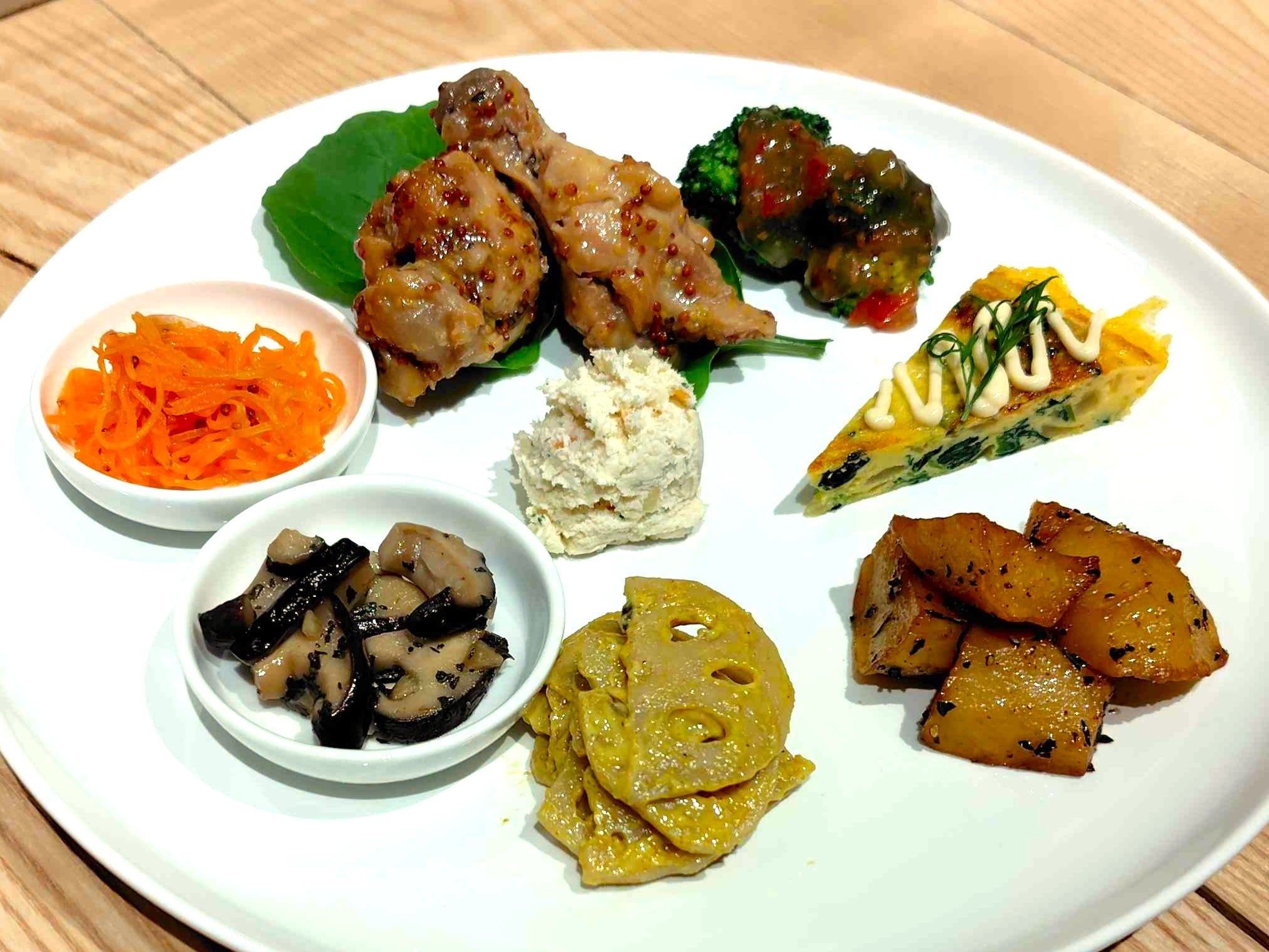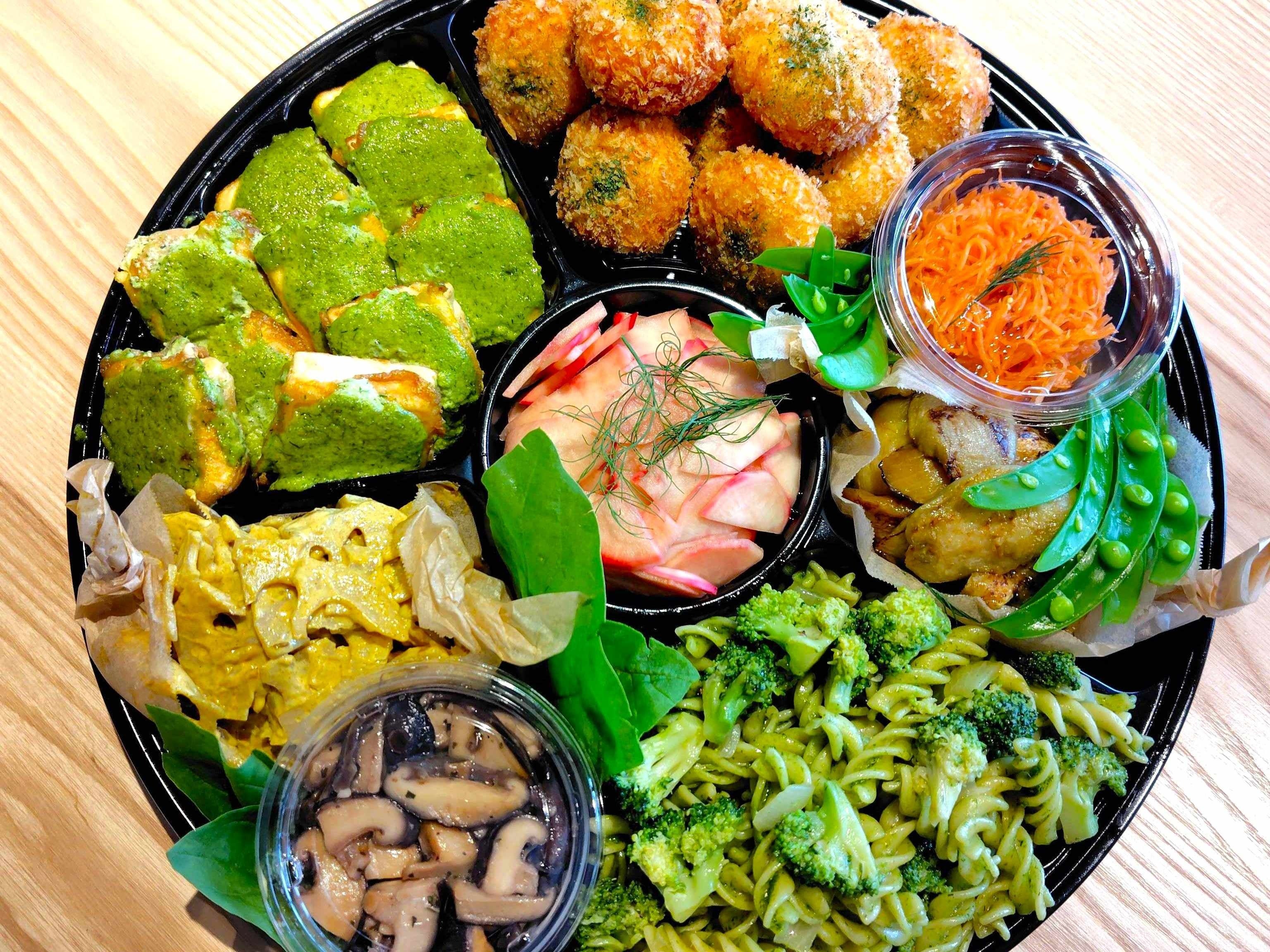 ランチメニューの一部はテイクアウトにも対応しており、事前にご注文いただければ野菜・大豆製品をたっぷり使ったオードブルのご購入も可能です。地域のお祭りや各種イベントに参加する際は、ランチメニューをアレンジしたり野菜の副菜を主役にしたりした特製のおむすびをその日限定で販売しており、中にはご予約くださるお客様もいらっしゃいます。