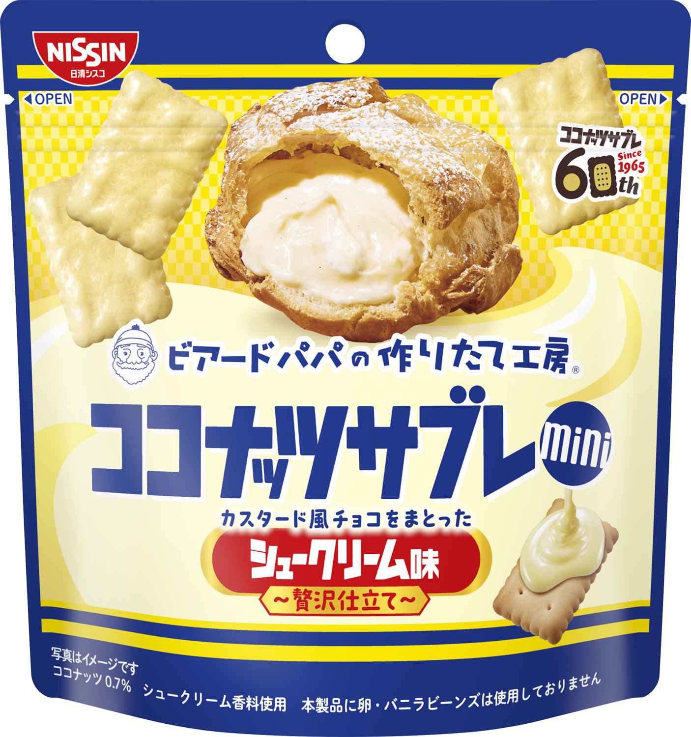 日清シスコ株式会社 (社長:山田 道明) は、「ココナッツサブレ シュークリーム味」を11月3日(月)に全国で新発売するとともに、「ココナッツサブレミニ シュークリーム味 ~贅沢仕立て~」を11月17日(月)にコンビニエンスストア (一部を除く) で先行発売し、12月1日(月)から全国のスーパーマーケットなどでも販売します。