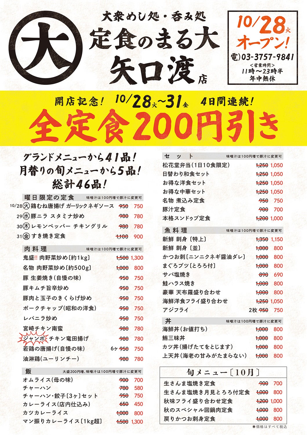 【実施店舗】新店舗 大衆食堂『定食のまる大』矢口渡店 限定