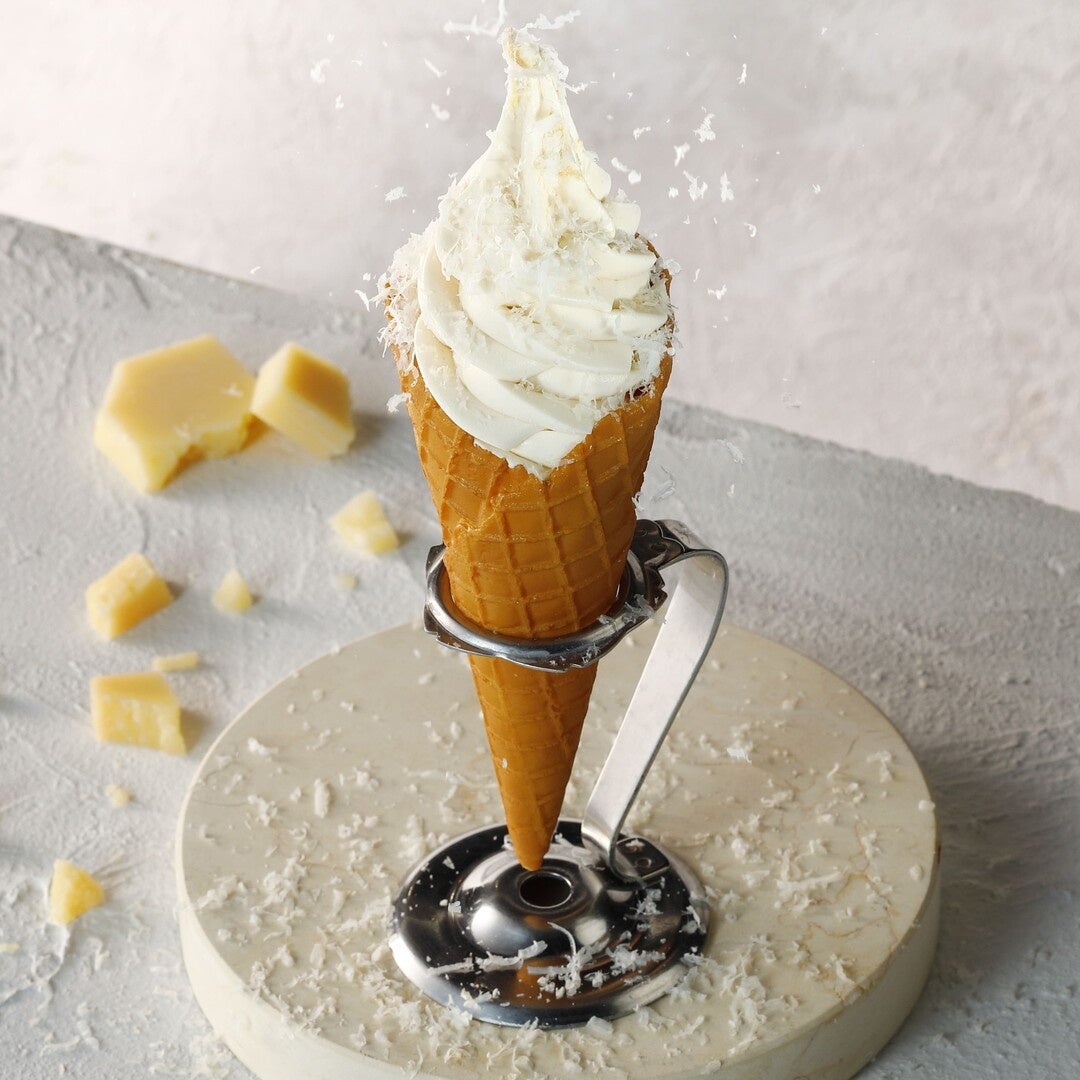 削りたてのグラナパダーノをトッピングした、ベイクドチーズケーキ風味のソフトクリームです。