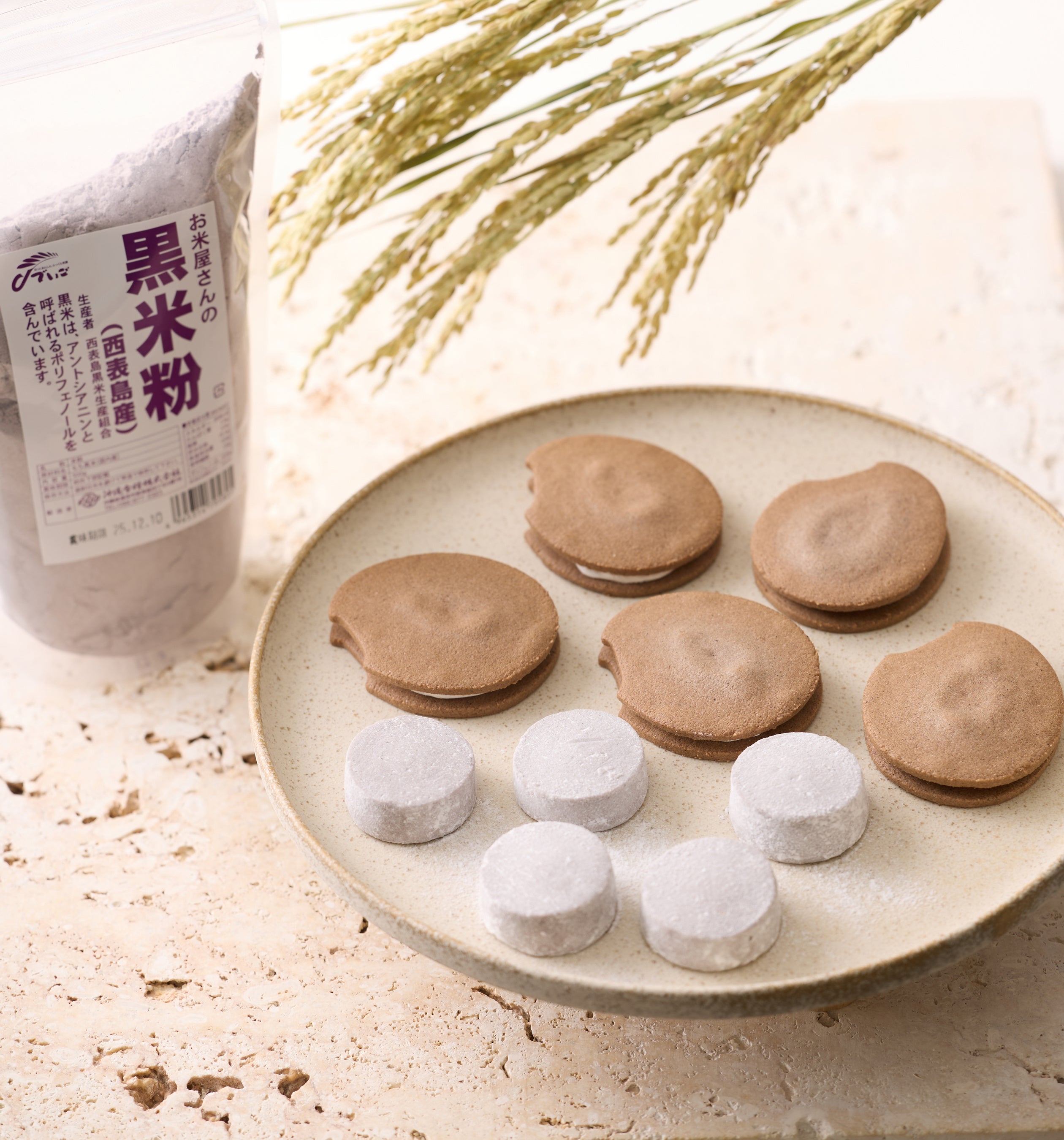 内容:こめの香サンド 2個、花ゆい黒米粉 4個