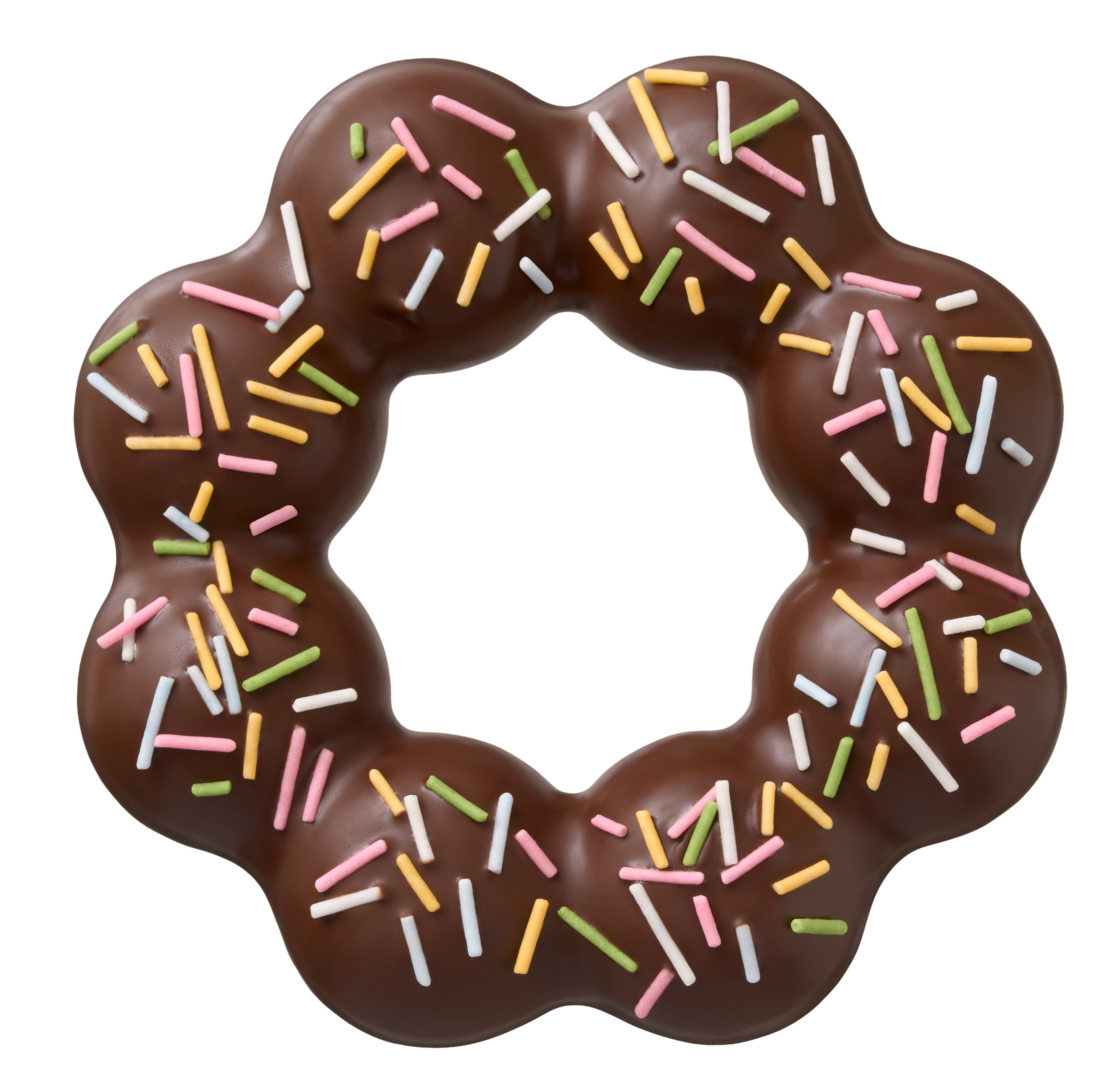 ポン・デ・リング生地にチョコレートをコーティングしてカラーシュガーをトッピングしました。