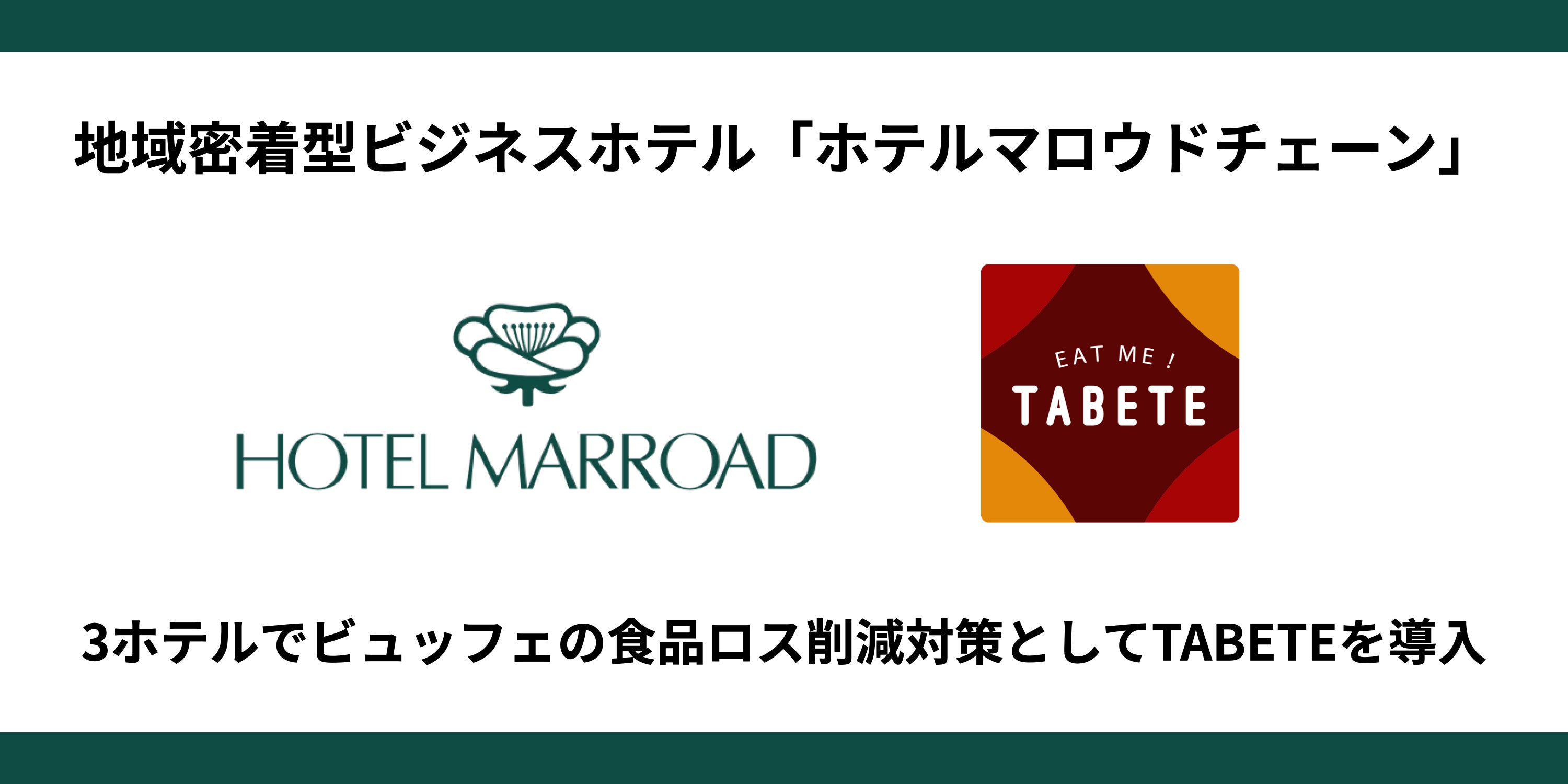 株式会社コークッキングが運営するフードシェアリングサービス「TABETE(タベテ)」が、首都圏を中心に展開する地域密着型ビジネスホテルチェーン「ホテルマロウド」(株式会社東都観光企業総轄本社・東都観光企業株式会社、代表取締役:宮本 繁樹)の3店舗にて導入されることになりました。