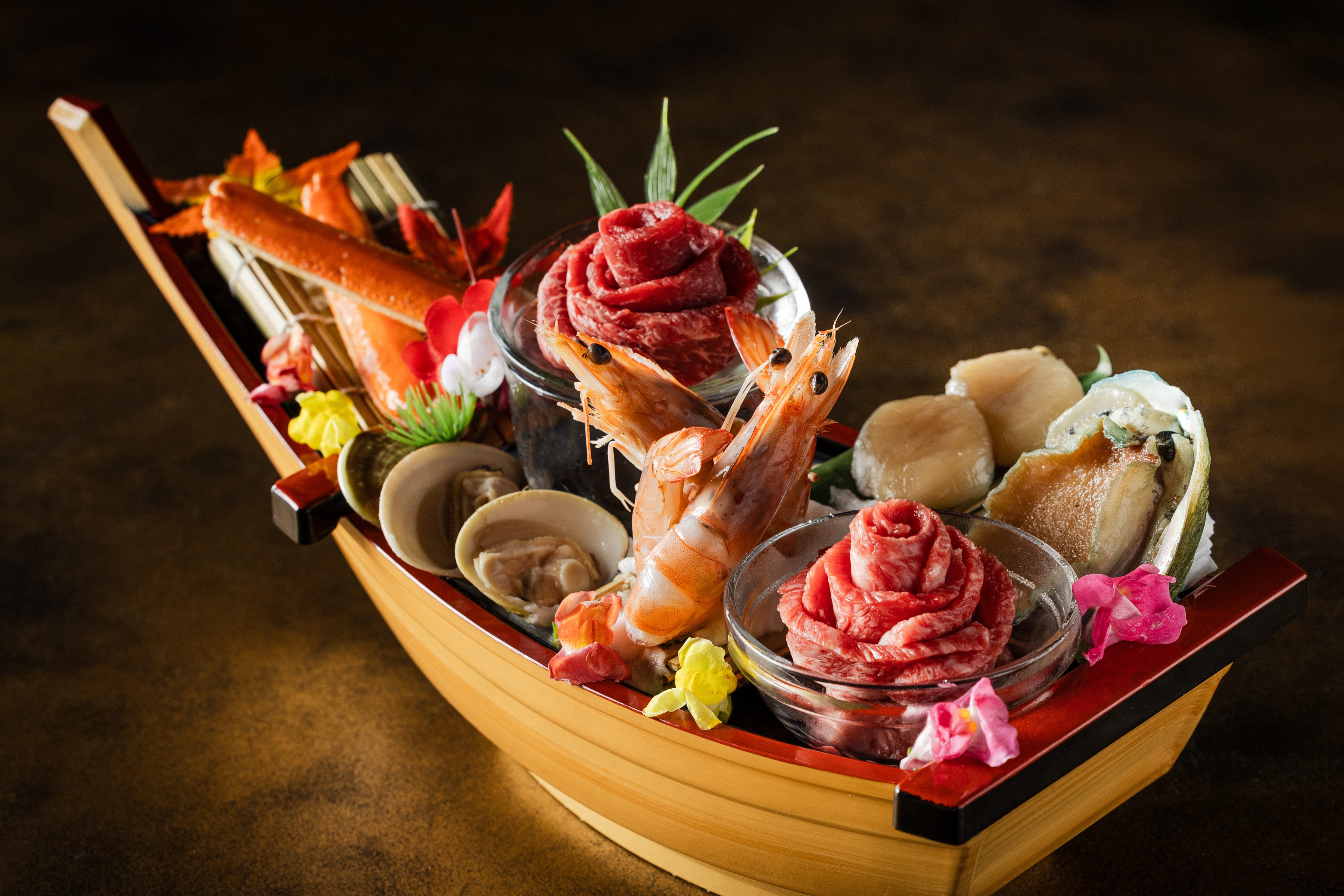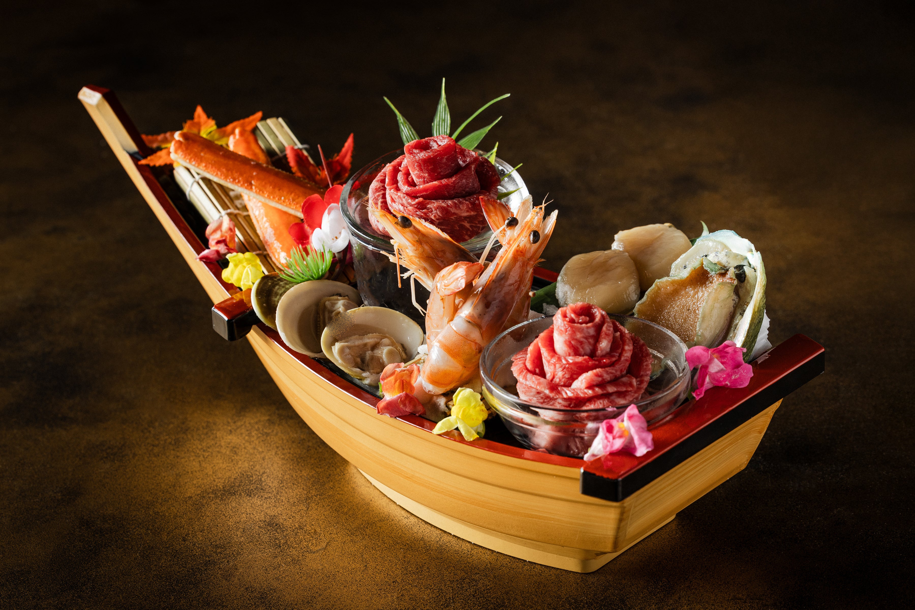 本企画では、通常では味わえない 海鮮5種(ずわい蟹・あわび・蛤・帆立・海老) を、特別仕様の舟盛りでご提供いたします。