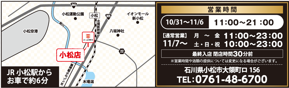 今回の出店にあたり、地域の皆さまにより身近に“かっぱ寿司の楽しさ”を感じていただけるよう、店内の快適性やメニューの充実にこだわりました。小松市は、歴史と文化が息づく街であり、家族連れや観光客の方々にも親しまれているエリアです。そんな小松の皆さまに、かっぱ寿司ならではの「おいしさ」「楽しさ」「安心感」をお届けできるよう、スタッフ一同心を込めて準備を進めてまいりました。