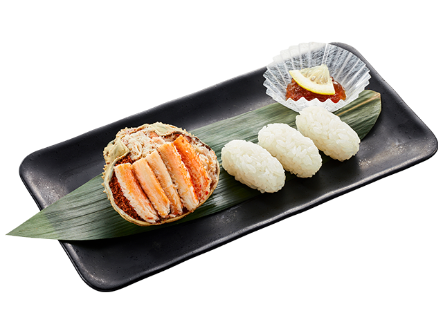 【北陸水揚げ】『香箱蟹甲羅盛~かっぱの本気シャリ3貫添え~』2,980円(税込)