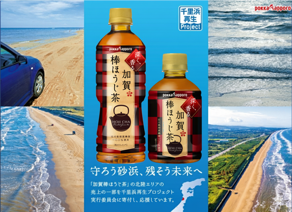 当社はこれからも「加賀棒ほうじ茶」で、石川県、羽咋市、宝達志水町ならびに「千里浜再生プロジェクト」を応援していきます。