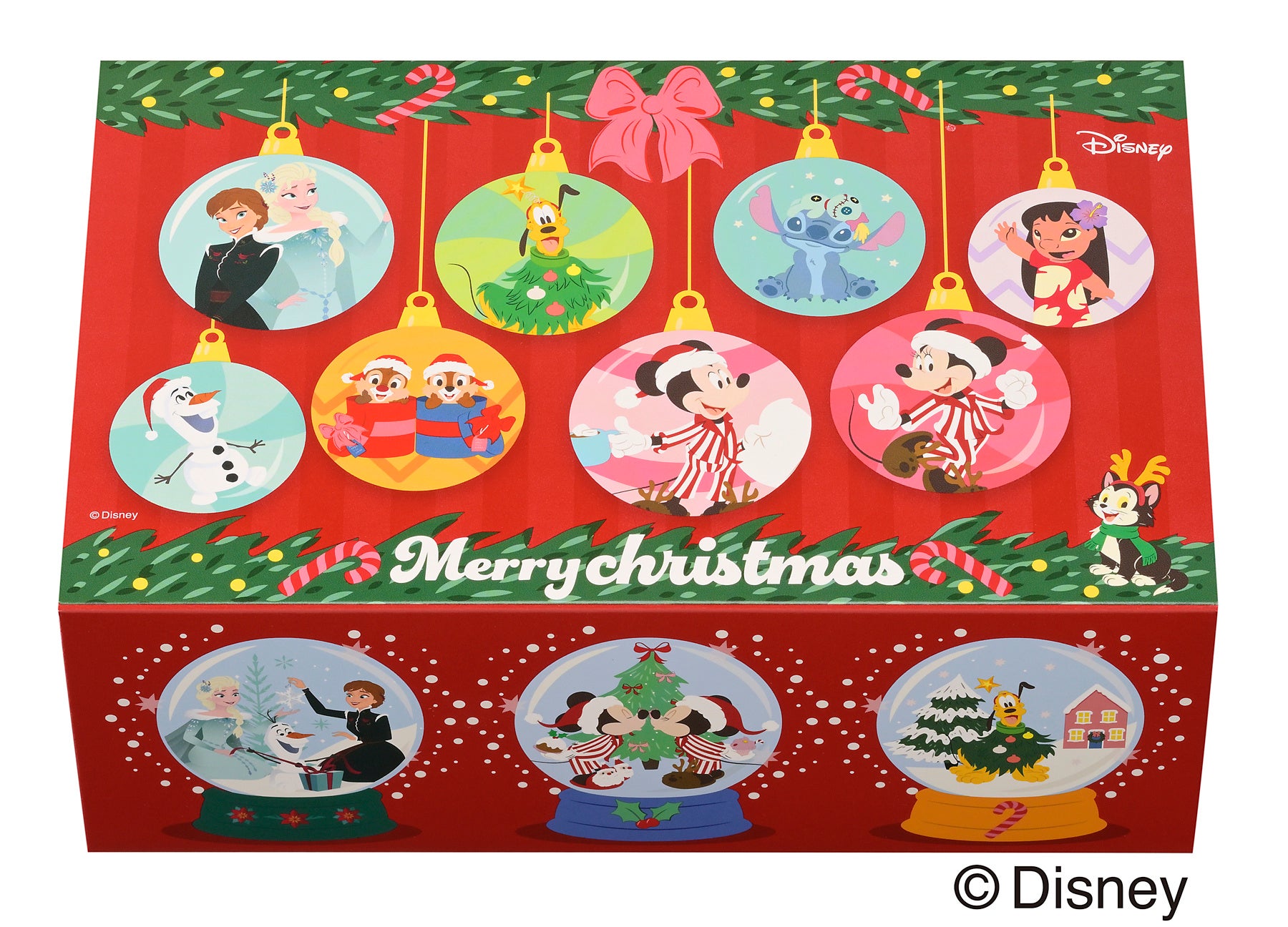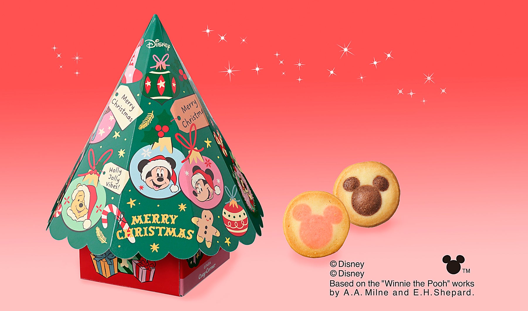 特長:ツリー形ボックスに、サンタクロースに扮した「ミッキーマウス」や「ミニーマウス」たちをデザイン。中にはミッキーアイコン柄クッキーを詰め合わせました。
