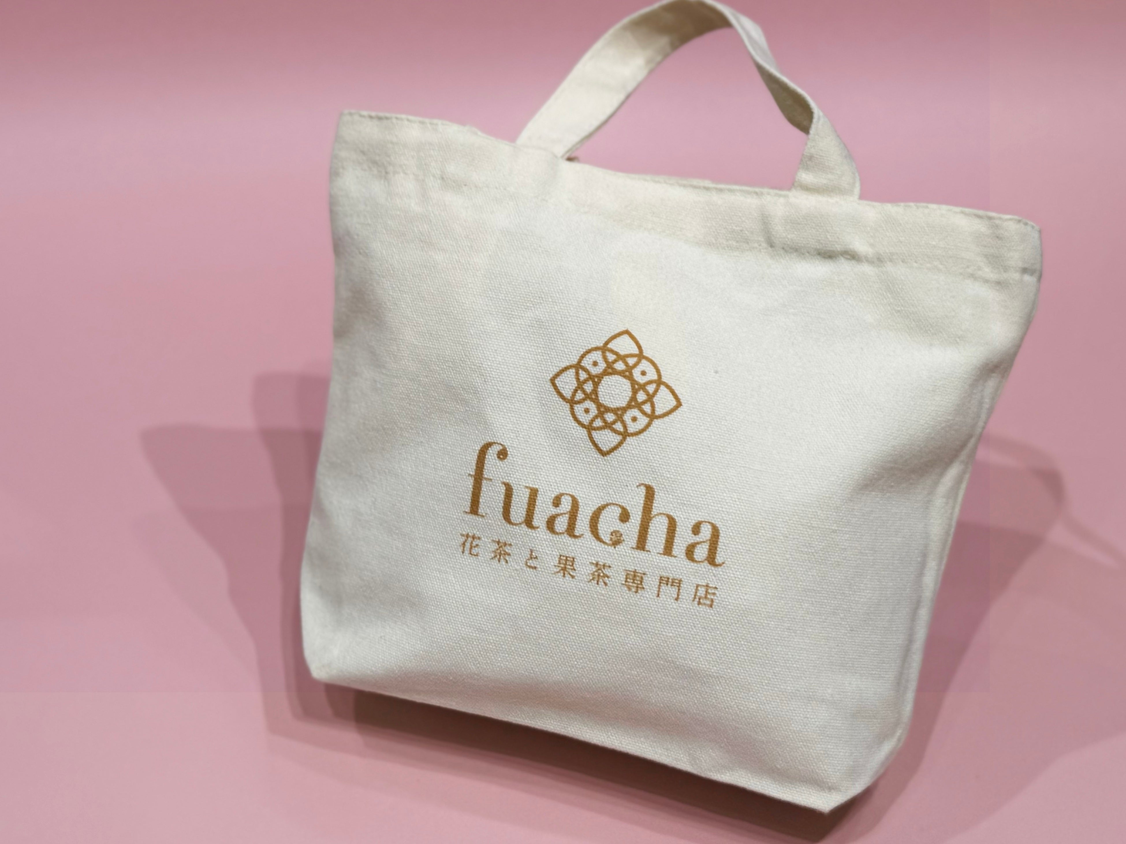 ノベルティとして、fuachaのオリジナルトートバッグをご用意しています。5,000円以上(税込)をご購入の方にプレゼントします。