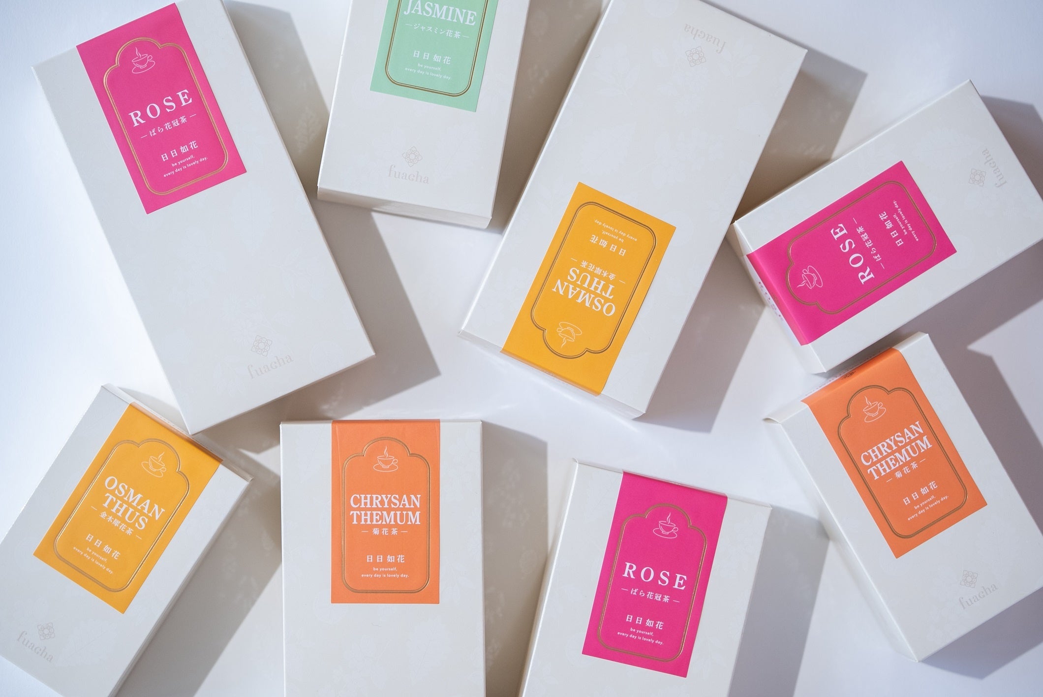 fuachaは見た目がとても華やかなので、大切な方のプレゼント用に購入される方も多くいらっしゃいます。今回は、花茶果茶小箱6個セットと「ばら花冠茶®と果茶セット」をご用意しました。