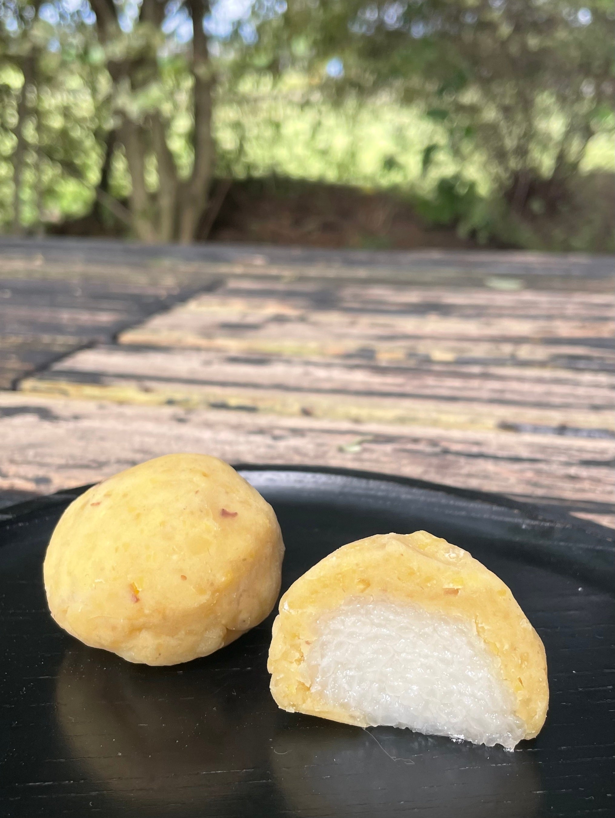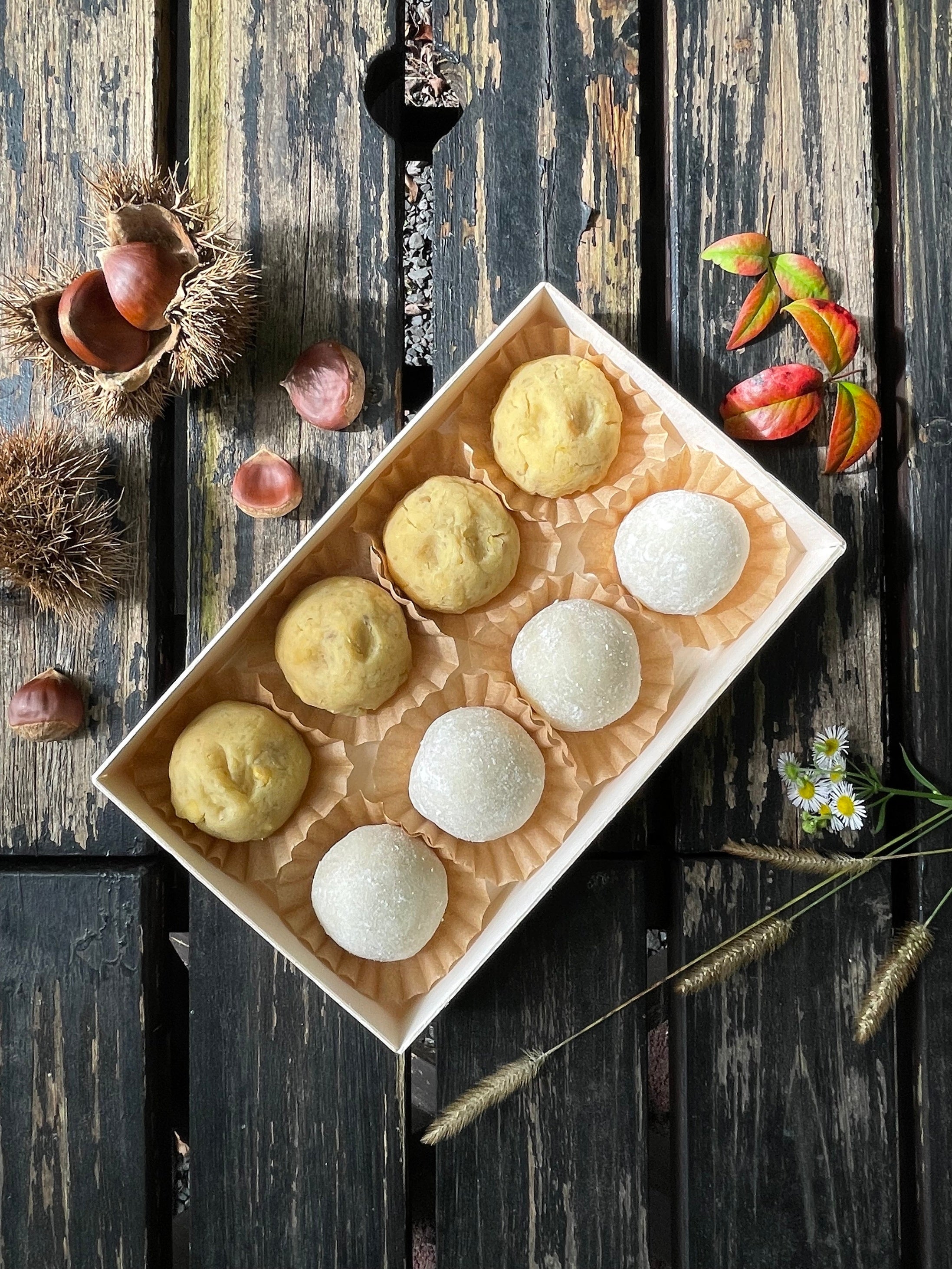 この極上の栗きんとん餡を包むのは、コシのある杵つき餅です。なめらかながらも弾力のある餅をあえて薄皮にすることで、濃厚な栗きんとんの風味を邪魔することなく、絶妙なハーモニーを奏でます。