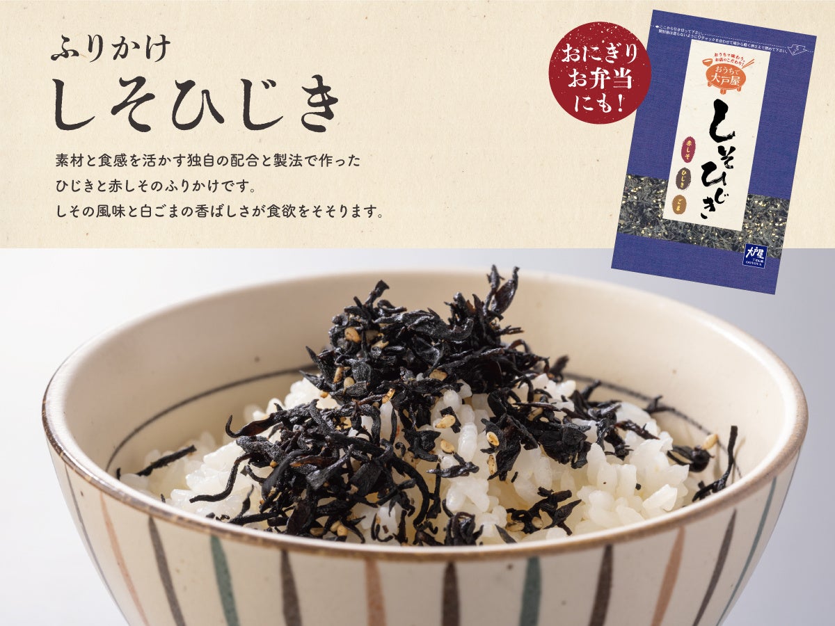 おうちでも大戸屋の味をお楽しみいただける人気のオリジナル商品や、全国の大戸屋ごはん処でご利用いただけるお得な「まんぷくーぽん」が入った、うれしい特典いっぱいの「大戸屋まんぷく袋」です。日本三大七味のひとつ”八幡屋礒五郎”とのコラボ七味は、2026年の干支をデザインした限定缶で登場。さらに今年は、新たに“小豆島産の海苔”を使用した「大戸屋 生のり佃煮」も仲間入りし、大戸屋のお弁当がぴったり入る「オリジナルお弁当バッグ」に詰め込みました。