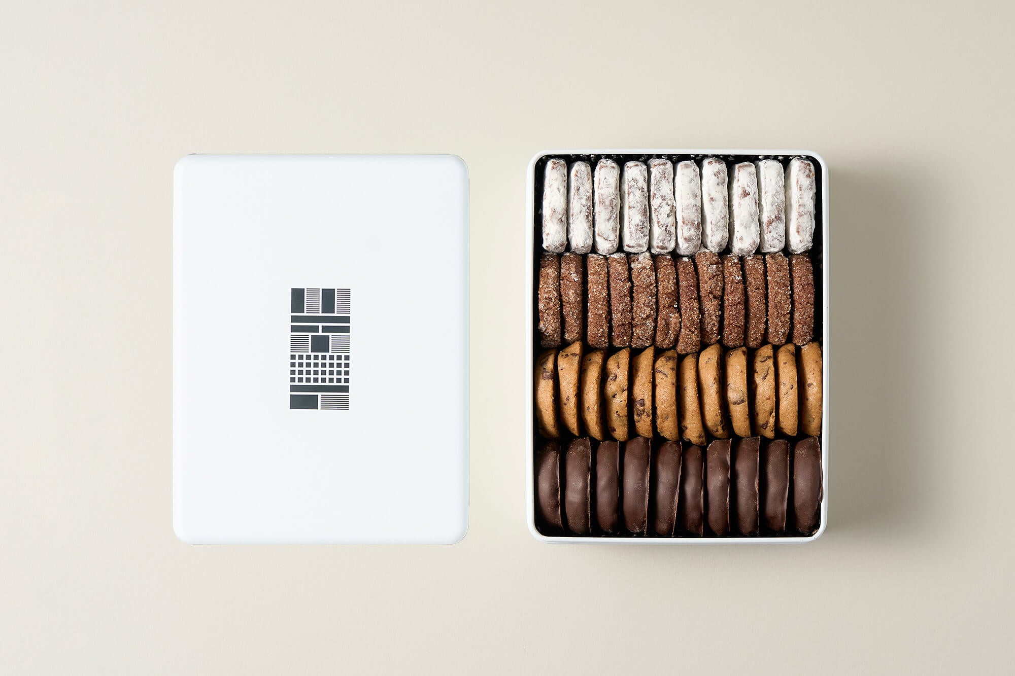 力強いカカオをダイレクトに味わう「チョコレートがけクッキー」、フルーティーな香りが広がる「チョコレートチップクッキー」、芳醇なチョコレートの風味広がる王道「ディアマンショコラ」、ナッツの食感をサクサクのクッキー生地と楽しむ「ヘーゼルナッツクッキー」、個性豊かな4種が入った、ついつい手が止まらなくなるクッキー缶です。