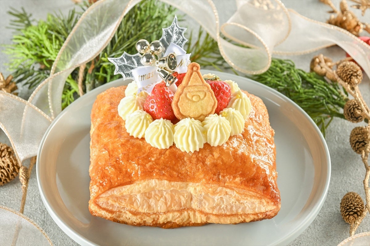 チョコクリームをたっぷり使った濃厚な『Christmasショコラミルフィーユ』は、ナッツ・ドライフルーツ・クリスマスオーナメントで華やかな仕上がりに。いちごクリームを詰めた『Christmasフレーズミルフィーユ』は、パイ生地に生クリームとカスタードクリームを合わせたクリームを贅沢に絞り、フレッシュないちごをあしらいました。甘酸っぱいいちごと軽やかなクリームが相性抜群です。『Christmasミルフィーユ』は、生クリームとカスタードクリームを合わせたクリームが存分に味わえる看板商品「ミルフィーユ」のクリスマスデコレーションです。パイのサクサク食感も魅力の1つ。