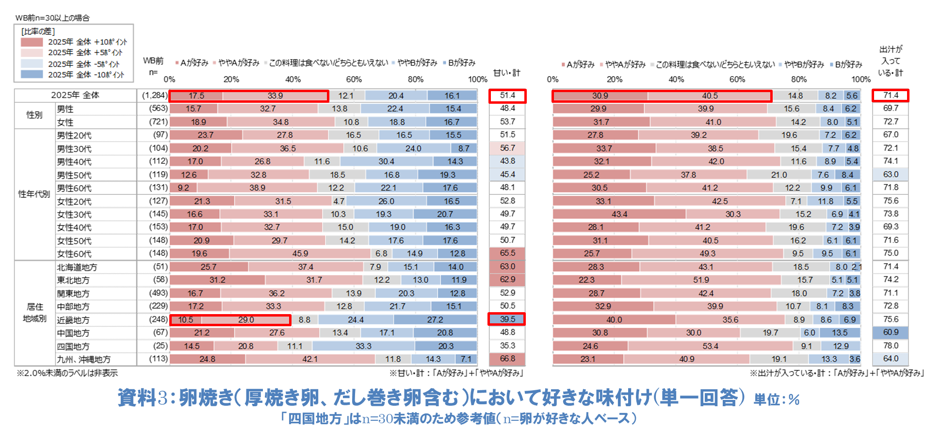 ③卵料理の地域性を紐解く。卵焼きの味付け、近畿地方で甘さの好みが拮抗