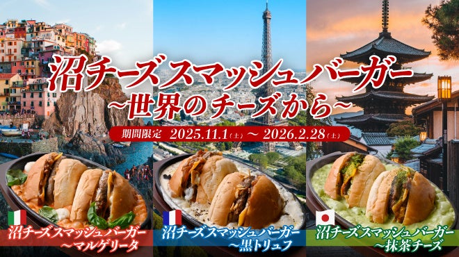 GOSSO株式会社(本社:東京都渋谷区 代表取締役:藤田建)が運営する「肉バル GABURICO 大宮店」「ビストロバンビーナ 名駅店」にて、2025年11月1日(土)~2026年2月28日(土)の期間限定で、『沼チーズスマッシュバーガー~世界のチーズから~』を販売いたします。