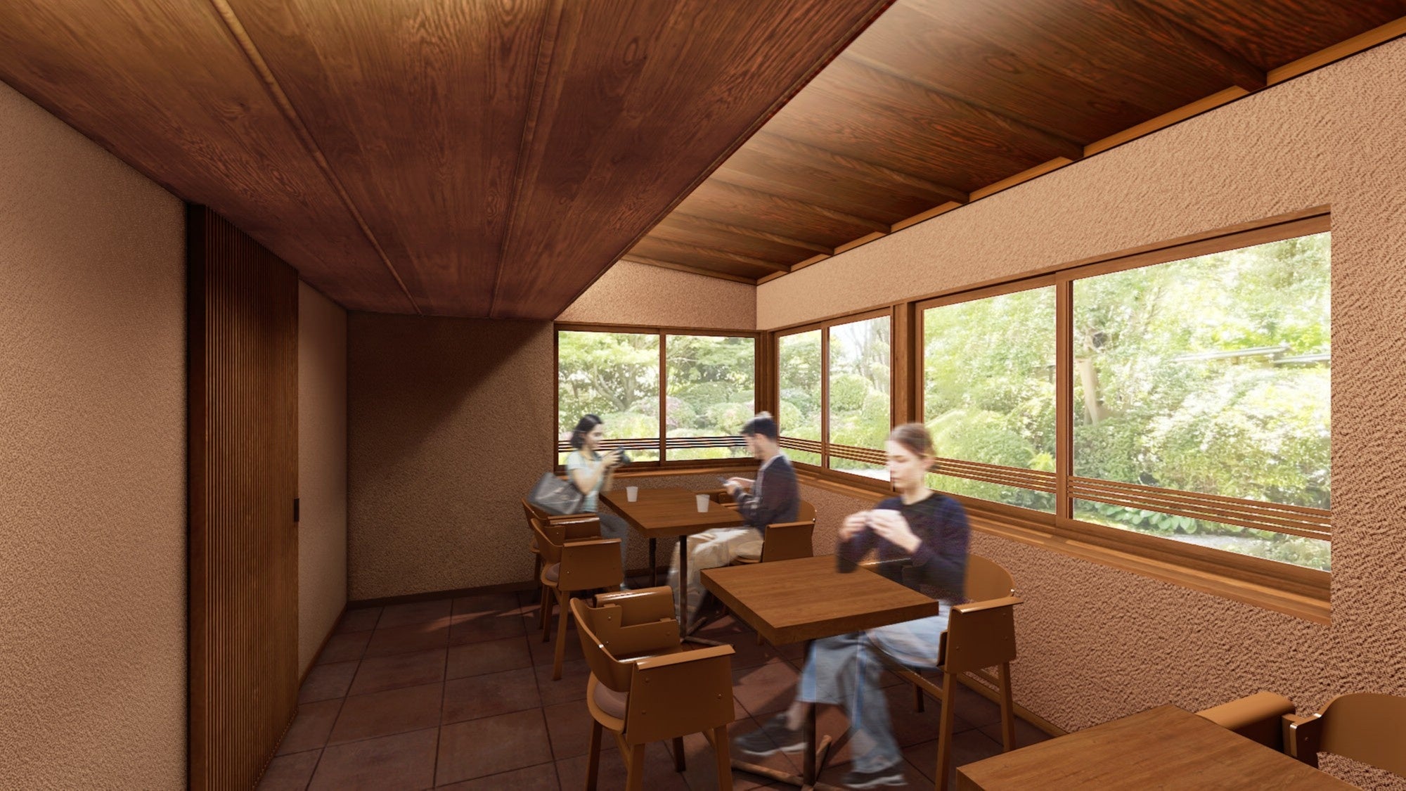歴史ある庭園を臨むイートインスペースを設置