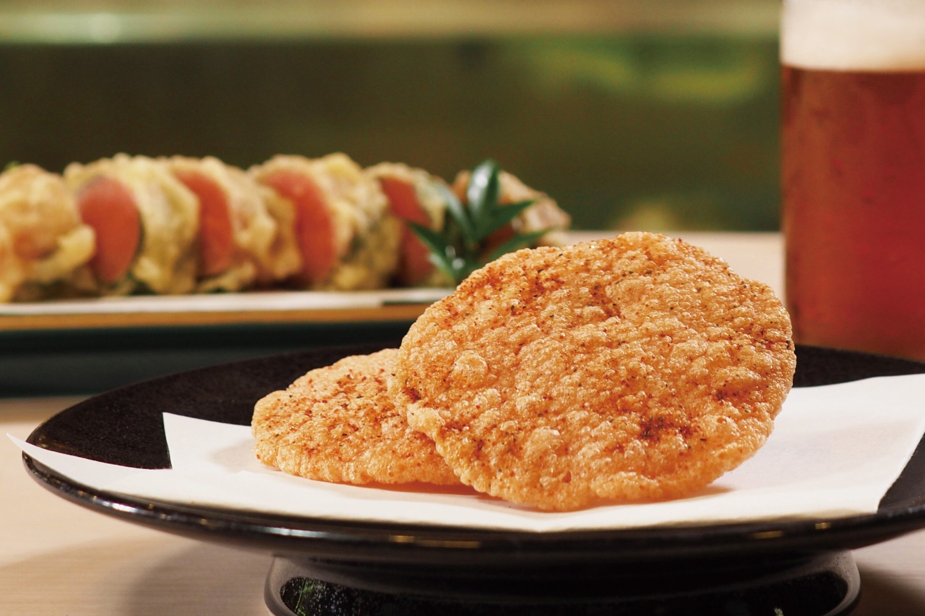 稚加榮の明太天ぷらを、せんべいに仕立てました