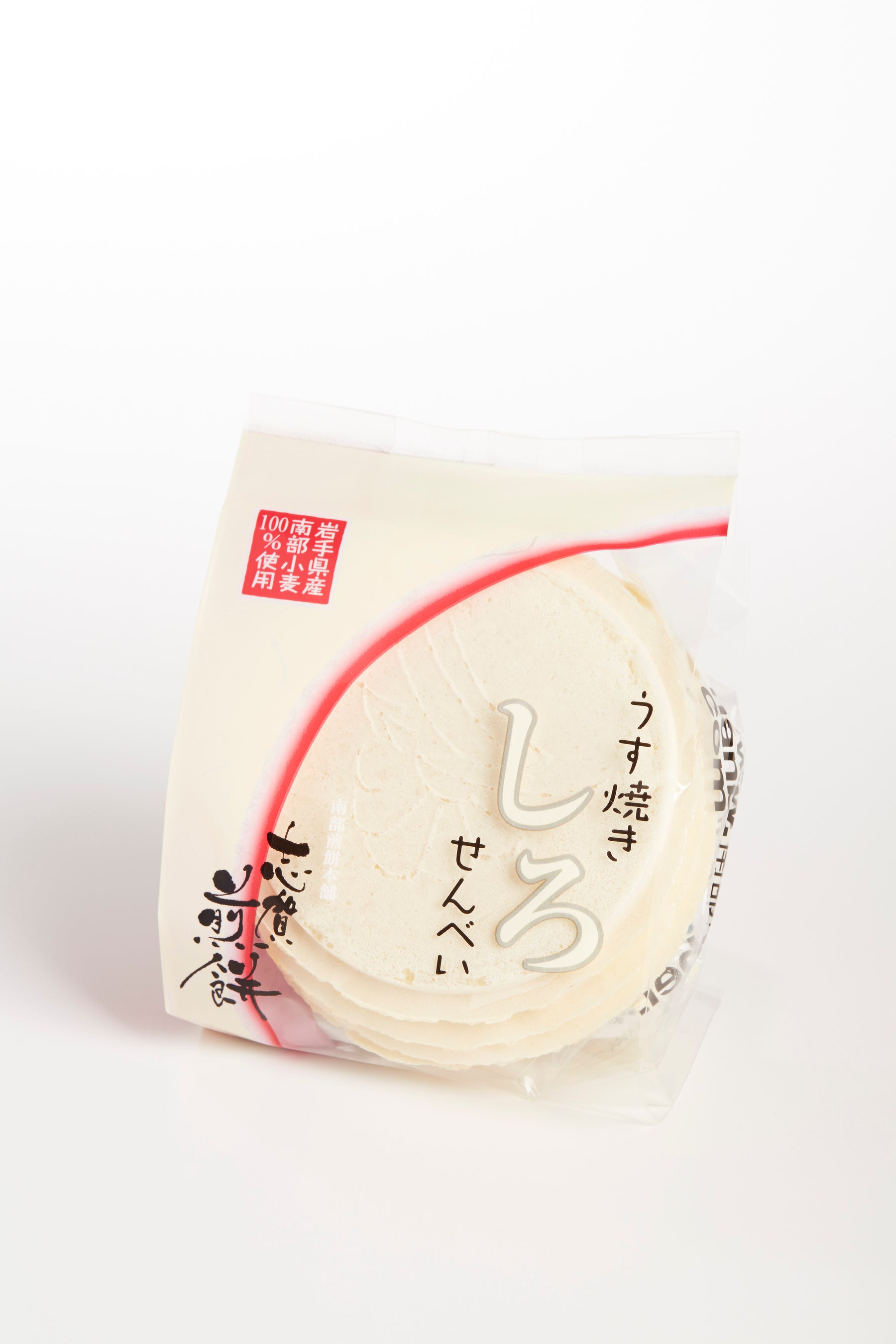 二戸ならではの軽やかなせんべい。通常の南部せんべいよりも薄く、パリッと軽やかな食感とともに、小麦のやさしい甘みを感じられるせんべいです。