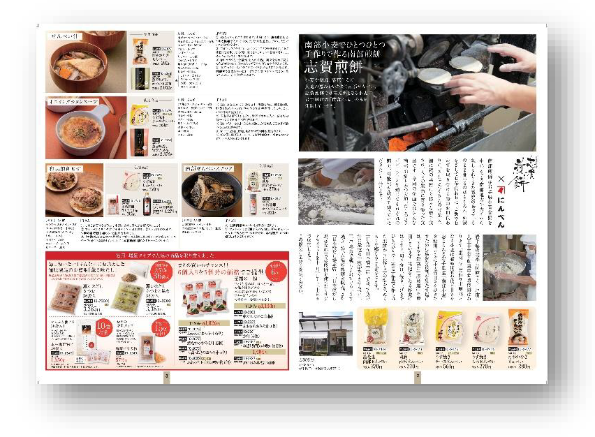 年に5回発刊される通販カタログでは、この冊子でしか読めない「鰹節」や「だし」にまつわる特集を掲載しています。今回は、にんべん社員が実際に志賀煎餅を訪問し、製造現場の裏側や職人の想いを取材しました。ぜひ、にんべん 日本橋本店にお越しいただき、『だし生活』をご用命ください。※数に限りがございますので、配布が終了した際はご容赦ください。