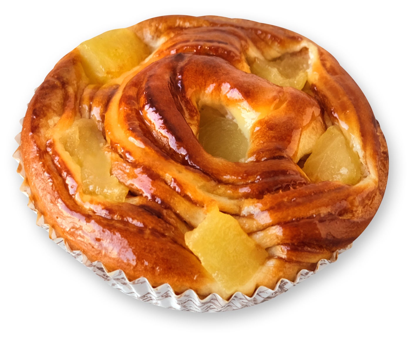 シナモン香るパン生地に、カスタードクリームと甘酸っぱいりんごプレザーブを包み込み、