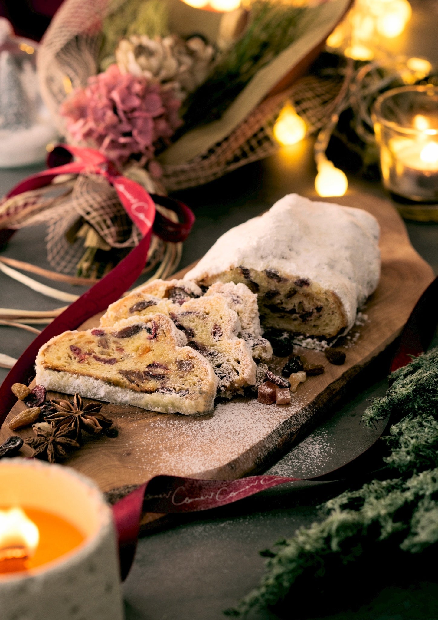 小麦粉を使わずに仕立てた、Comme’Nの特別な“グルテンフリーシュトレンフルーツ”。グルテンフリーの生地に合わせて厳選したフルーツの豊かな香りを生かし、丁寧に成形した生地でなめらかな口どけに仕上げました。