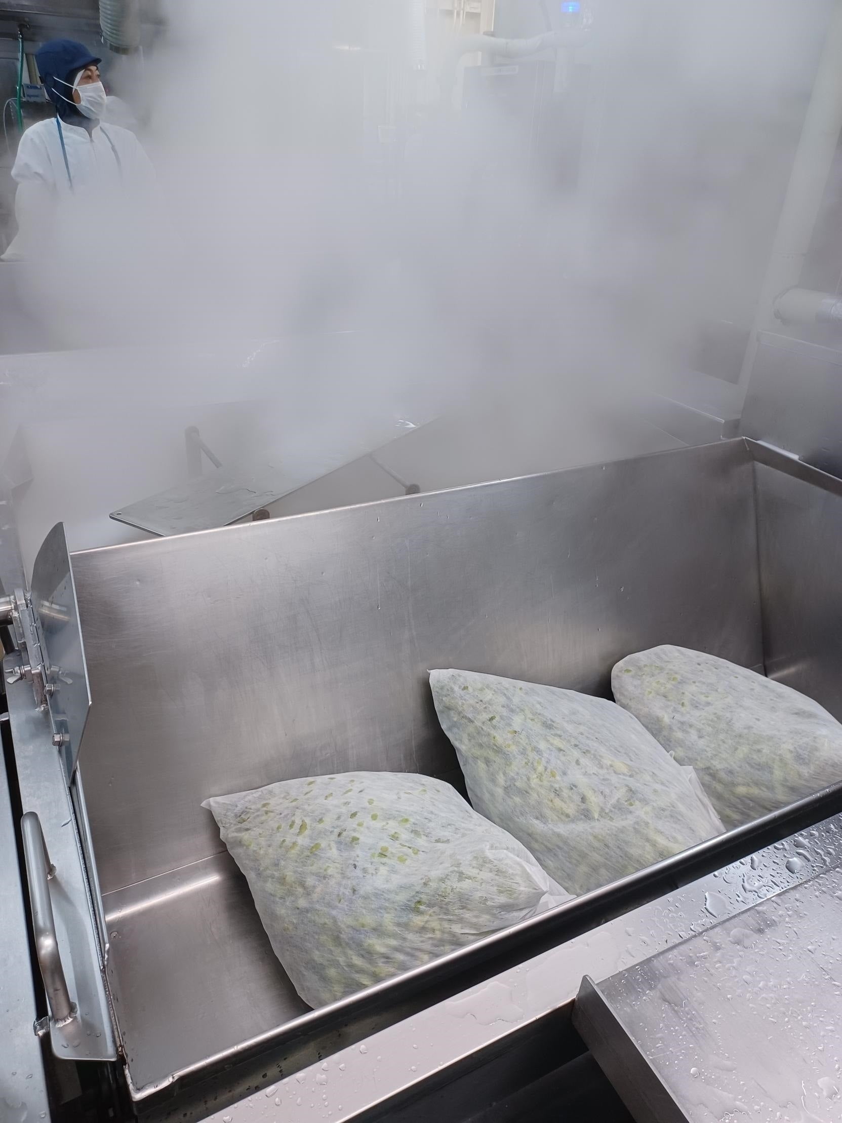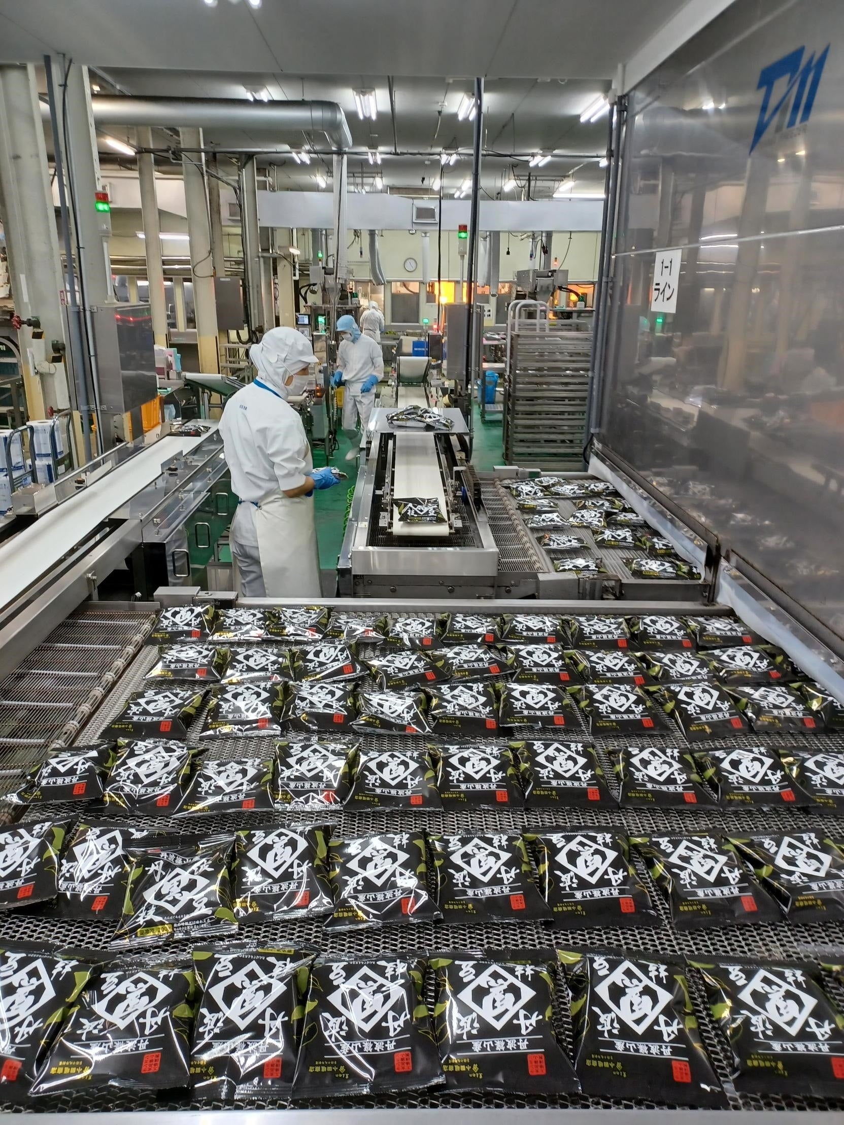 豆を、ケンミン食品の冷凍食品工場(丹波篠山