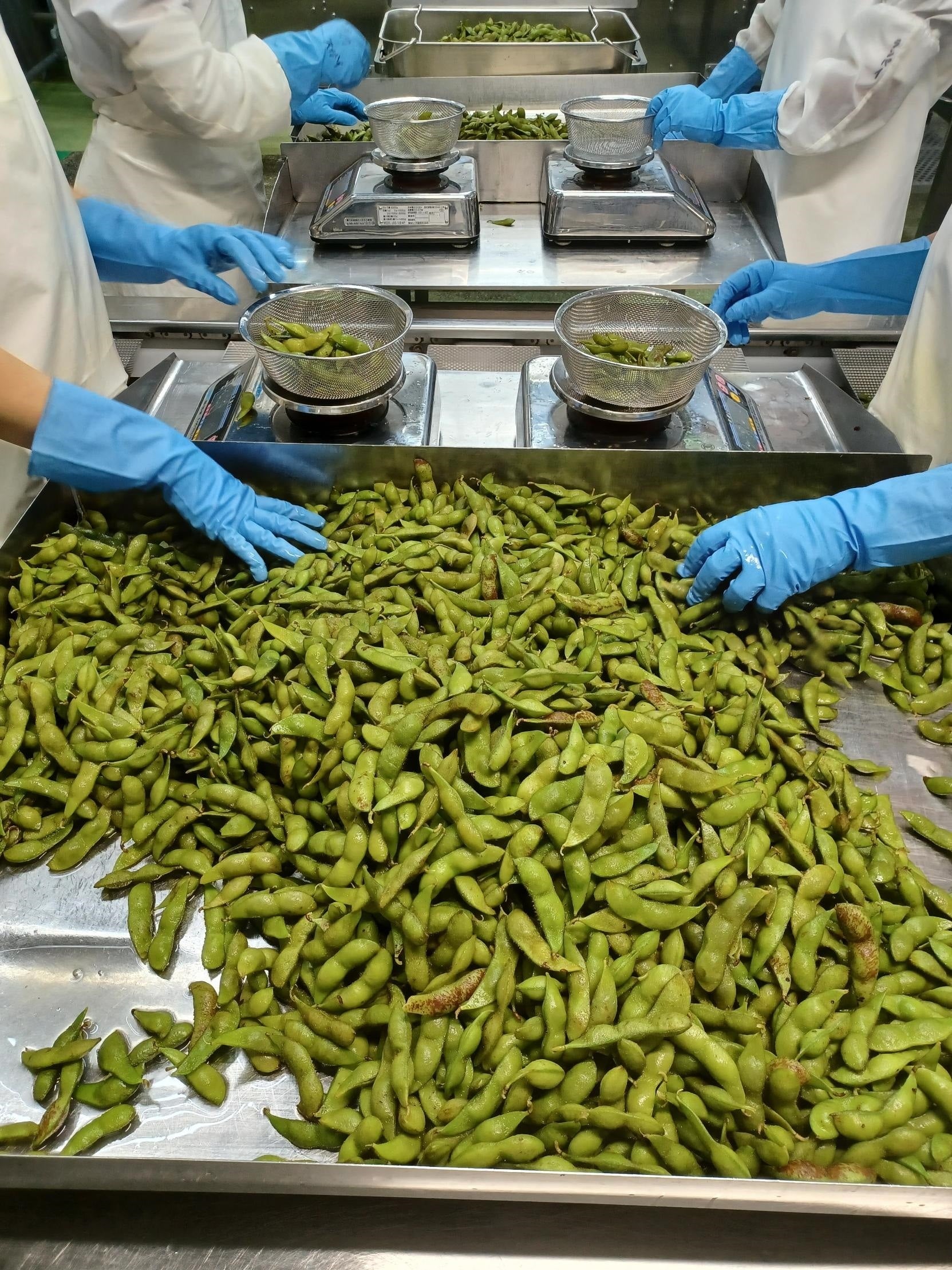 今年の黒枝豆は、好天の影響で例年と比較して莢(さや)付きがよく、また豆が大ぶりに育っており豊作の年となりました。当社では冷凍加工により、旬の味を一年中楽しめる商品に仕上げました。また、枝豆は海外で『EDAMAME』 として人気を博していることを受け、当社が「大阪・関西万博」に出店した「GF RAMEN LAB大阪・関西万博店」でもメニューとして提供し、好評を博しました。