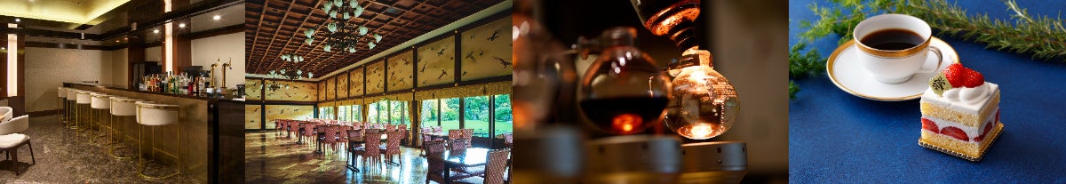 令和2(2020)年には、本館の歴史的・建築的価値が認められ、東京都指定有形⽂化財(建造物)に指定されました。現在は、平日は主にラウンジ/ダイニング「kinkei」としてご利用いただけます。庭園に面した開放的な「空間」と、明治時代の面影を残す格天井など歴史あるインテリアが、和魂洋才の上質な「時間」を提供します。また、明治記念館オリジナルのケーキや和洋菓子、サイフォン式で抽出するコーヒーもお愉しみいただけるなど、都会の喧騒を離れ、落ち着いた空間・時間を満喫できる「場」を提供しています。