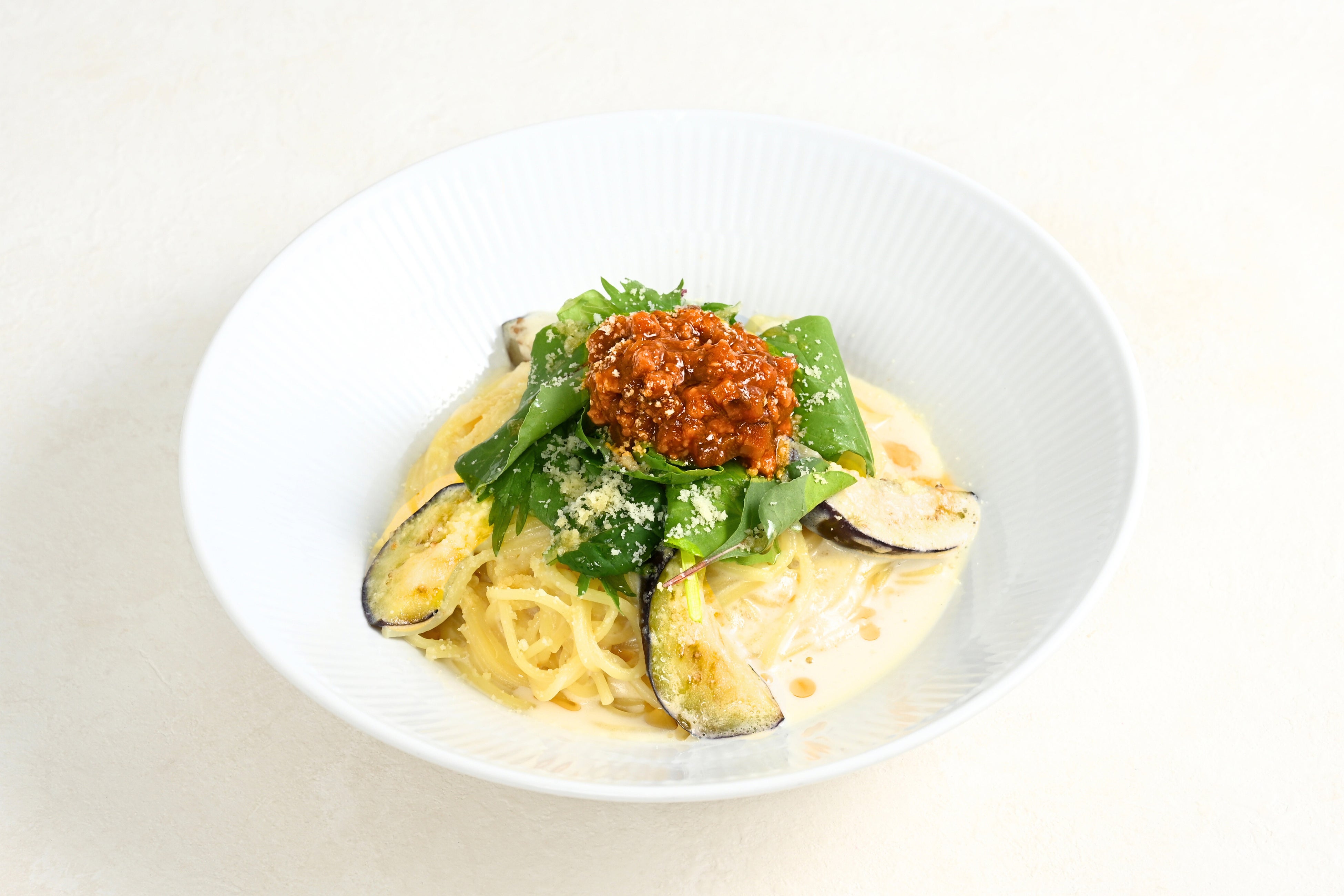 肉味噌と合うように、酒粕のほか、豆乳、チーズでクリーミーなソースに仕上げました。