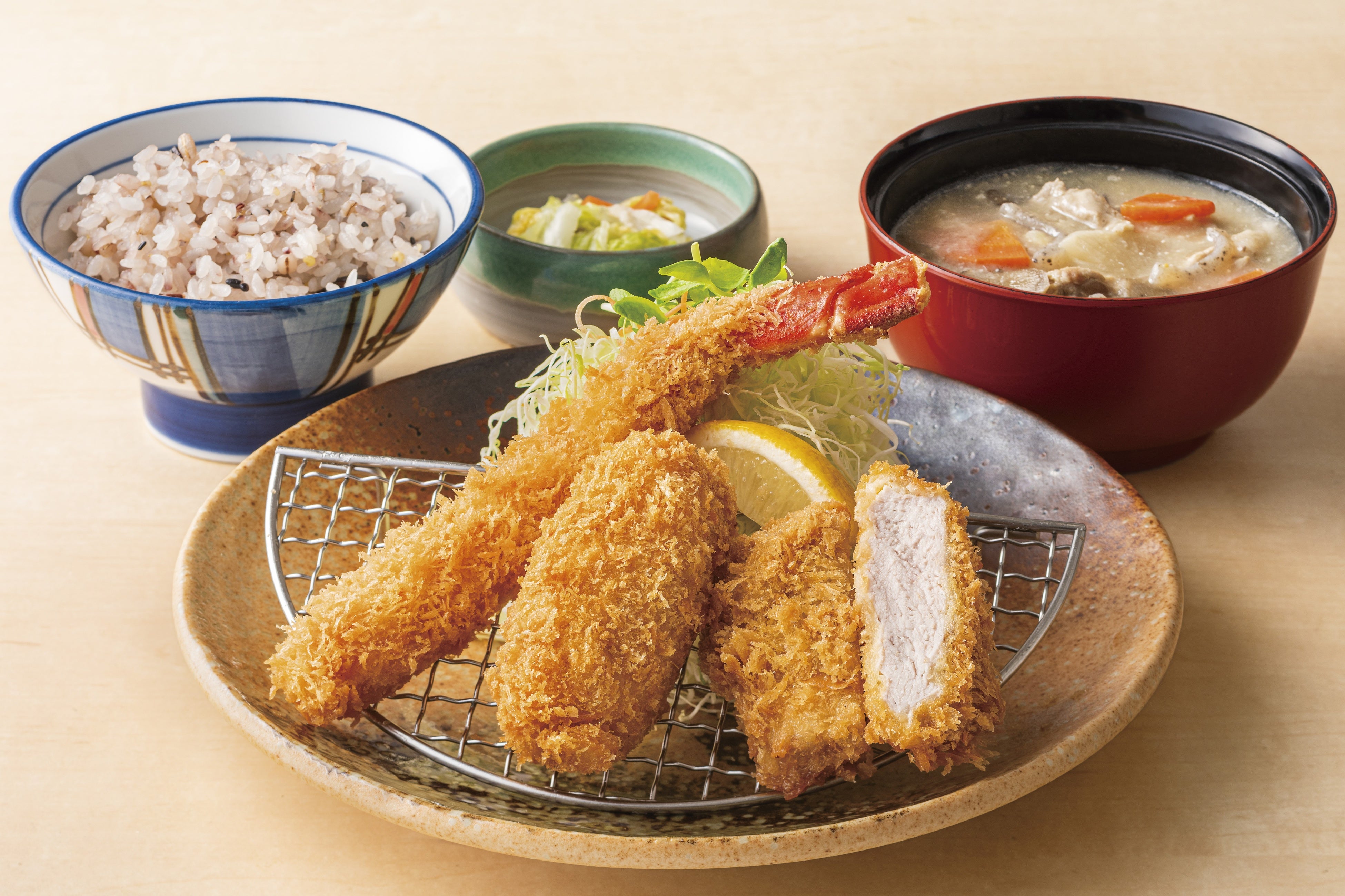 かにコロとヒレかつ&天然海老フライ(小)定食