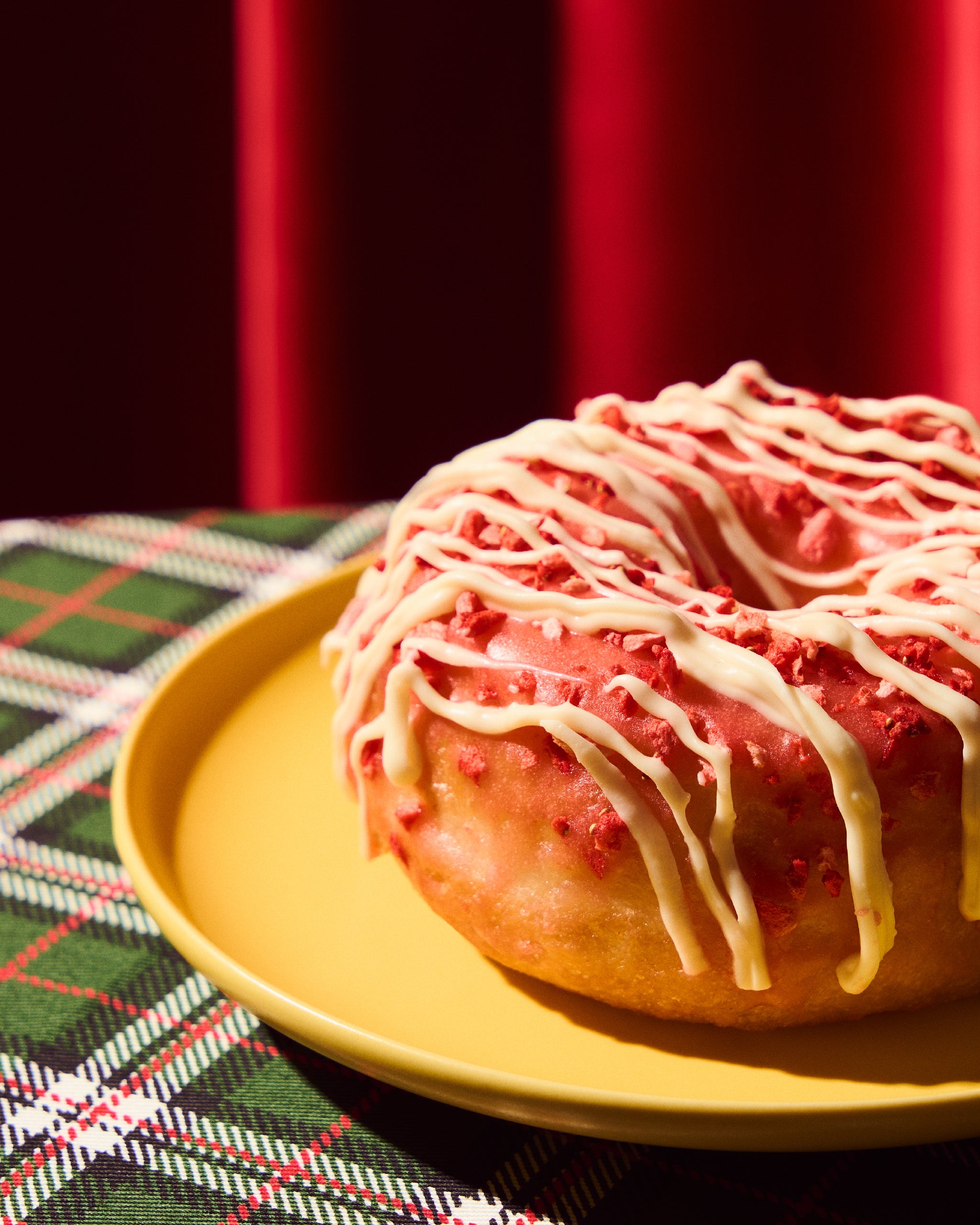 ベリーの爽やかな酸味とホワイトチョコの優しい甘さがやみつきになる、ホリデーシーズンにぴったりのご褒美ドーナツです。