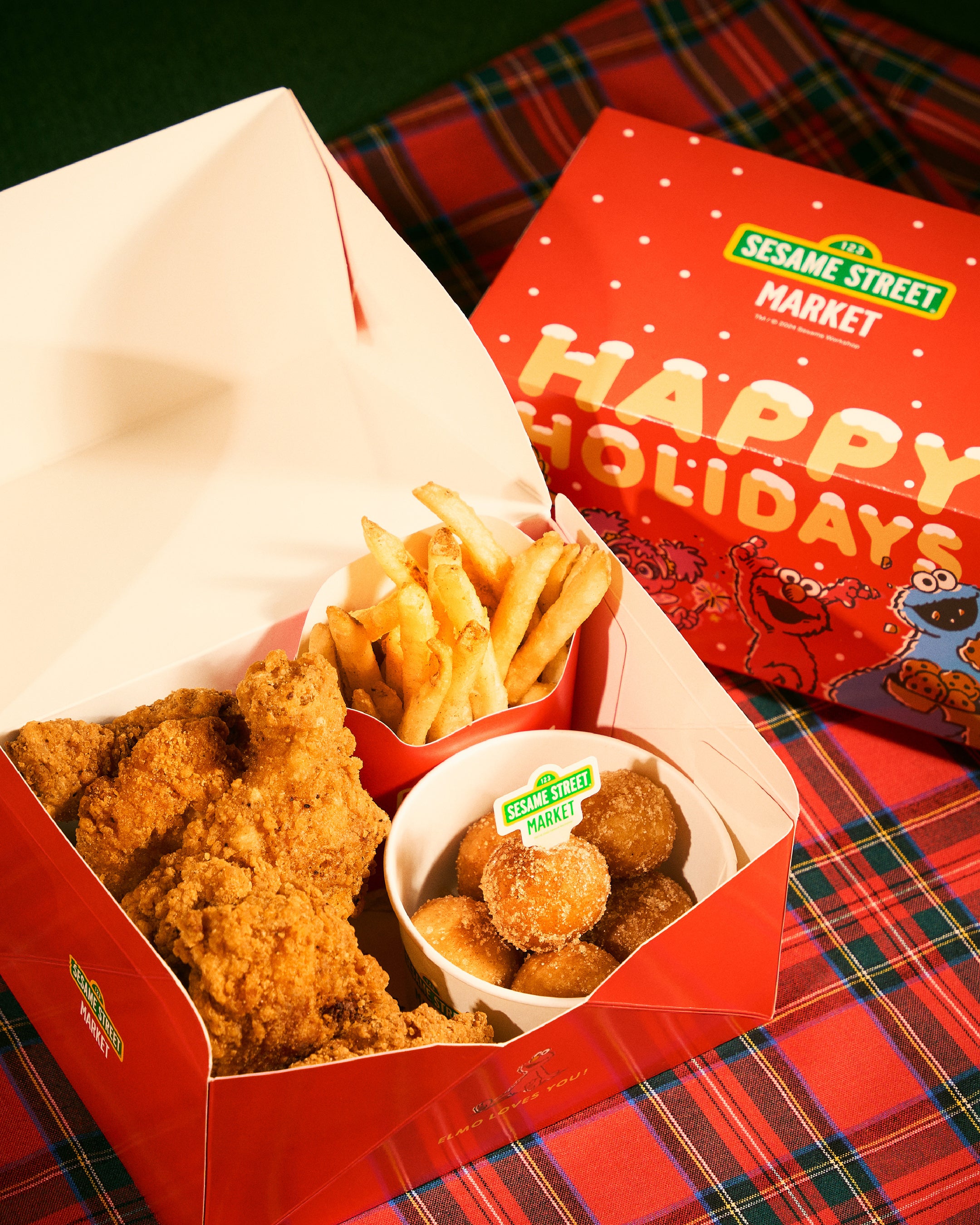 株式会社マッシュスタイルラボ(本社:東京都千代田区/代表取締役社長:近藤広幸)が展開する物販・カフェ・ワークショップを複合した世界で唯一のセサミストリートのオフィシャルストア「セサミストリートマーケット」では、2025年11月4日(火)よりセサミストリートマーケット 池袋サンシャインシティ店(以下、池袋店)およびアーバンドック ららぽーと豊洲店(以下、豊洲店)にて「HOLIDAY PARTY SPECIAL BOX」をテーマとするチキンボックス・ホリデーピザボックスの予約受付を開始いたします。また、「COZY HOLIDAYS」をテーマとするホリデードーナツとキャラクターラテを同日2025年11月4日(火)より池袋店および豊洲店各店のカフェエリアにて期間限定で発売いたします。