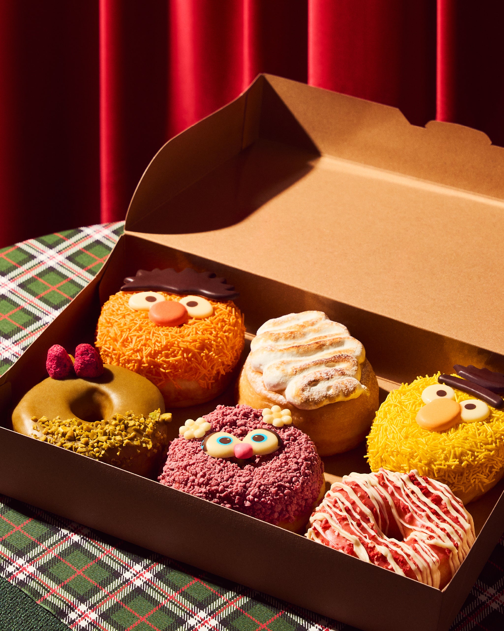 クリスマスシーズンにぴったりのリースのようなビジュアルに心躍るブロンテピスタチオドーナツ、ベリーの爽やかな酸味とホワイトチョコの優しい甘さが魅力の見た目にも華やかなホワイトショコラベリードーナツ、レモンの酸味とメレンゲのふんわりとした甘さが口いっぱいに広がるレモンメレンゲドーナツの3種のホリデードーナツをはじめ、定番人気のキャラクタードーナツとホリデー限定のドーナツを詰め合わせたホリデードーナツボックス、ホリデー限定デザインのキャラクターラテも展開します。