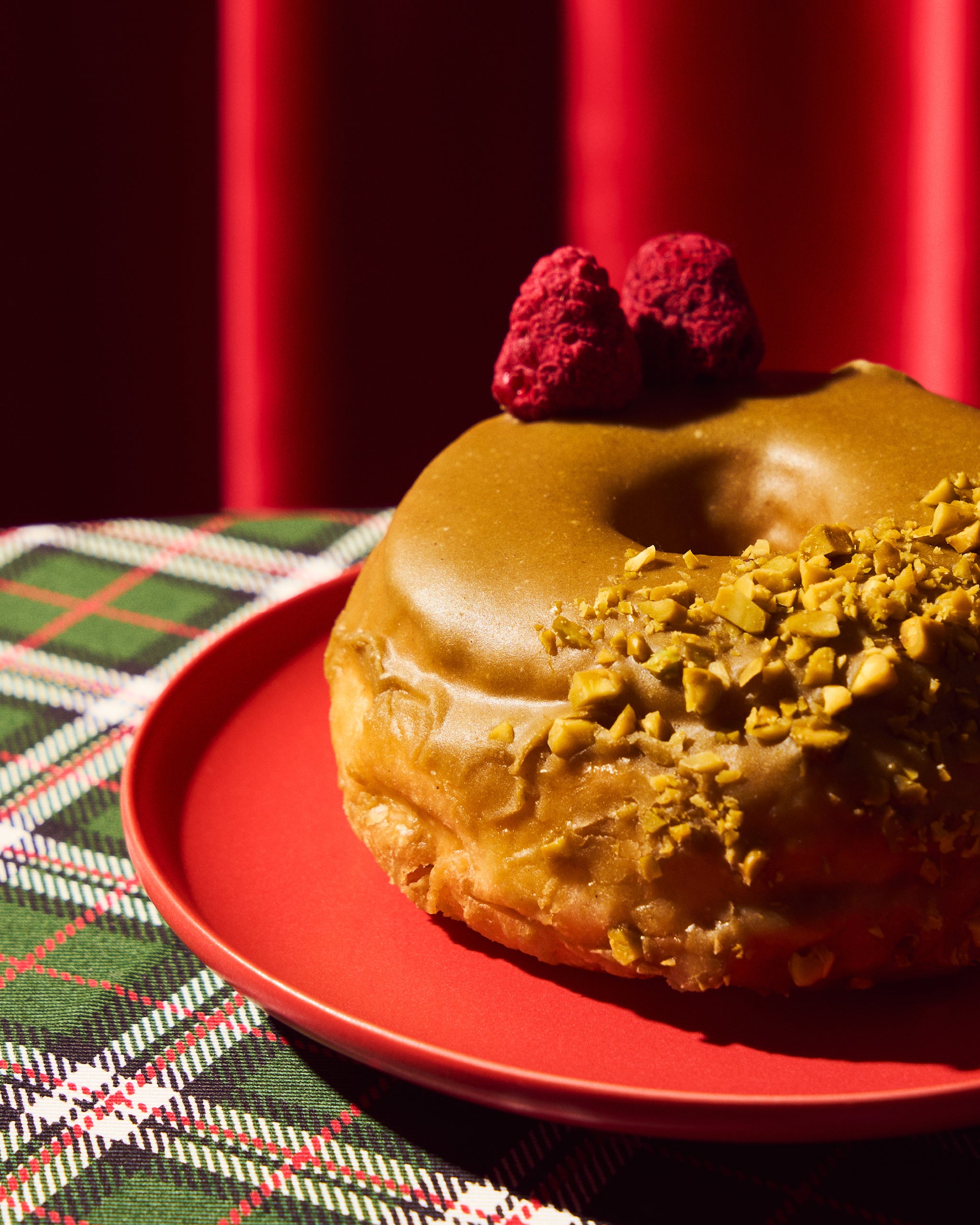 「ピスタチオの町」として知られるシチリア島ブロンテ産のピスタチオをたっぷりと使用した濃厚なグレーズに、甘酸っぱいラズベリーをトッピング。甘みと酸味が織りなす贅沢な味わいが楽しめる一品です。仕上げにのせたクラッシュピスタチオが食感のアクセントになり、最後のひとくちまで飽きずにお召し上がりいただけます。