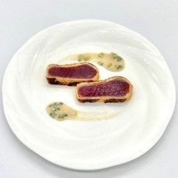 「手間がかかる揚げ物に近づけるべく、レアかつの見た目に似ている鰹のたたきを使用してレシピを開発しました。衣には、既に揚げられている油揚げを使用しています。」