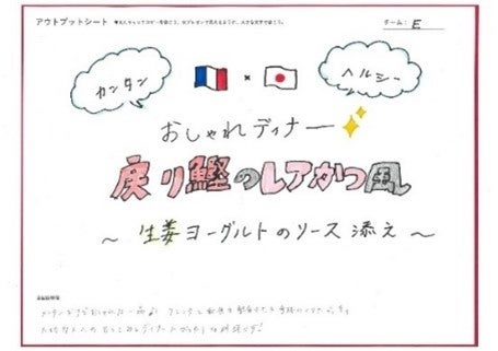 今回のワークショップで考案した6つのレシピのキャッチコピーとそこに至るディスカッション内容を元に、本プロジェクトの学生2名(小川さん、新村さん)がレシピ名をブラッシュアップし、ミツカンのメニュー開発担当者からのアドバイスも参考に、最終的なレシピ名を決定しました。これらの6つのレシピは、ミツカン公式メニューとして、ミツカンの HP「おうちレシピ」ページに掲載されています。https://www.mizkan.co.jp/ouchirecipe/