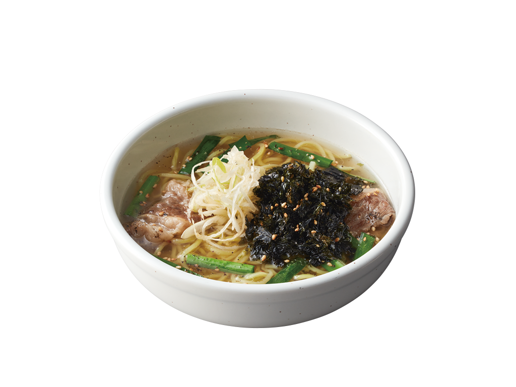 胡麻油の香ばしい風味が特徴の韓国海苔をたっぷりと入れ、シャキシャキの白ネギと合わせました。さっぱりとした塩味の中にも力強い牛肉の旨味を感じる本格ラーメンです。
