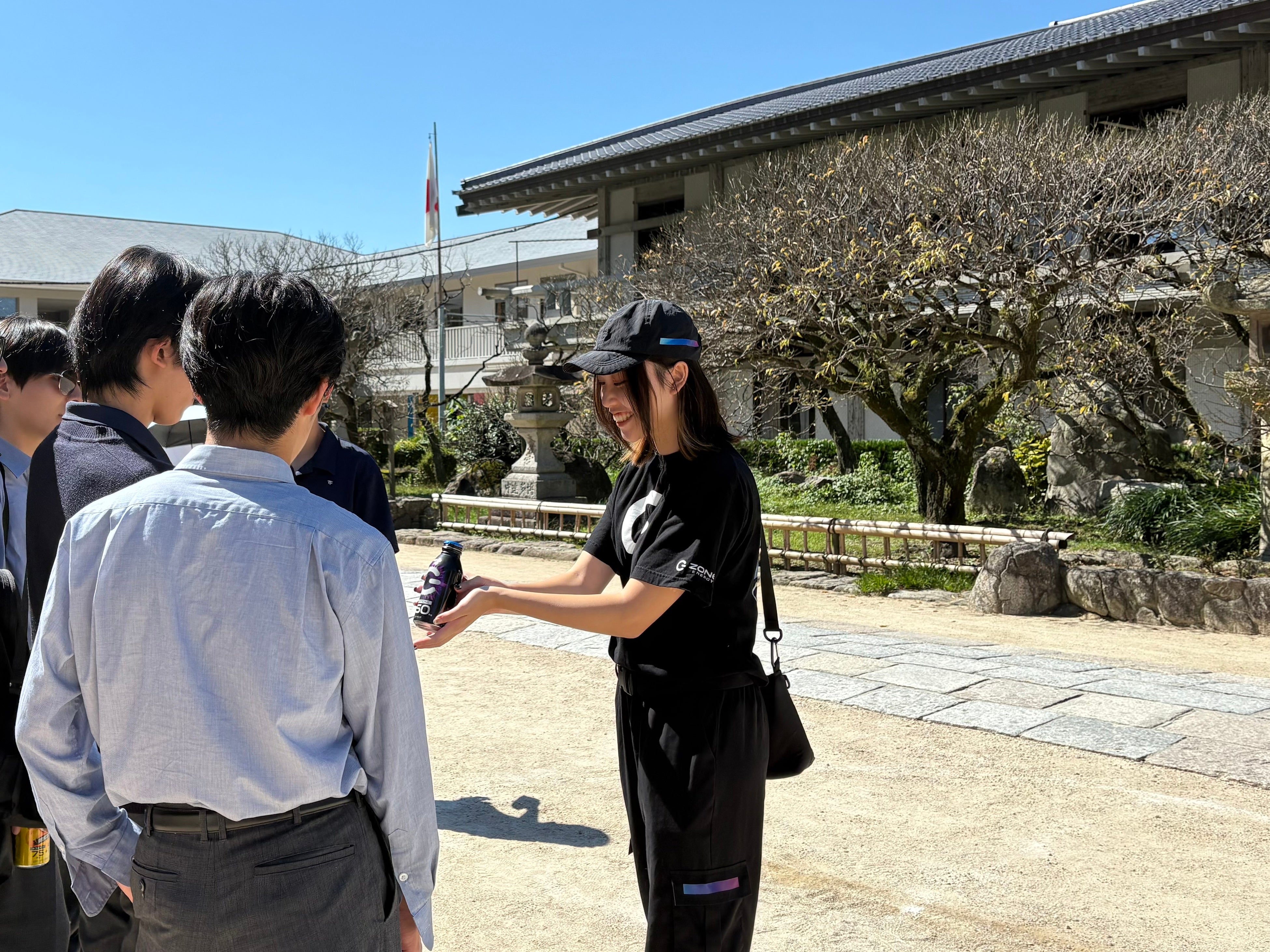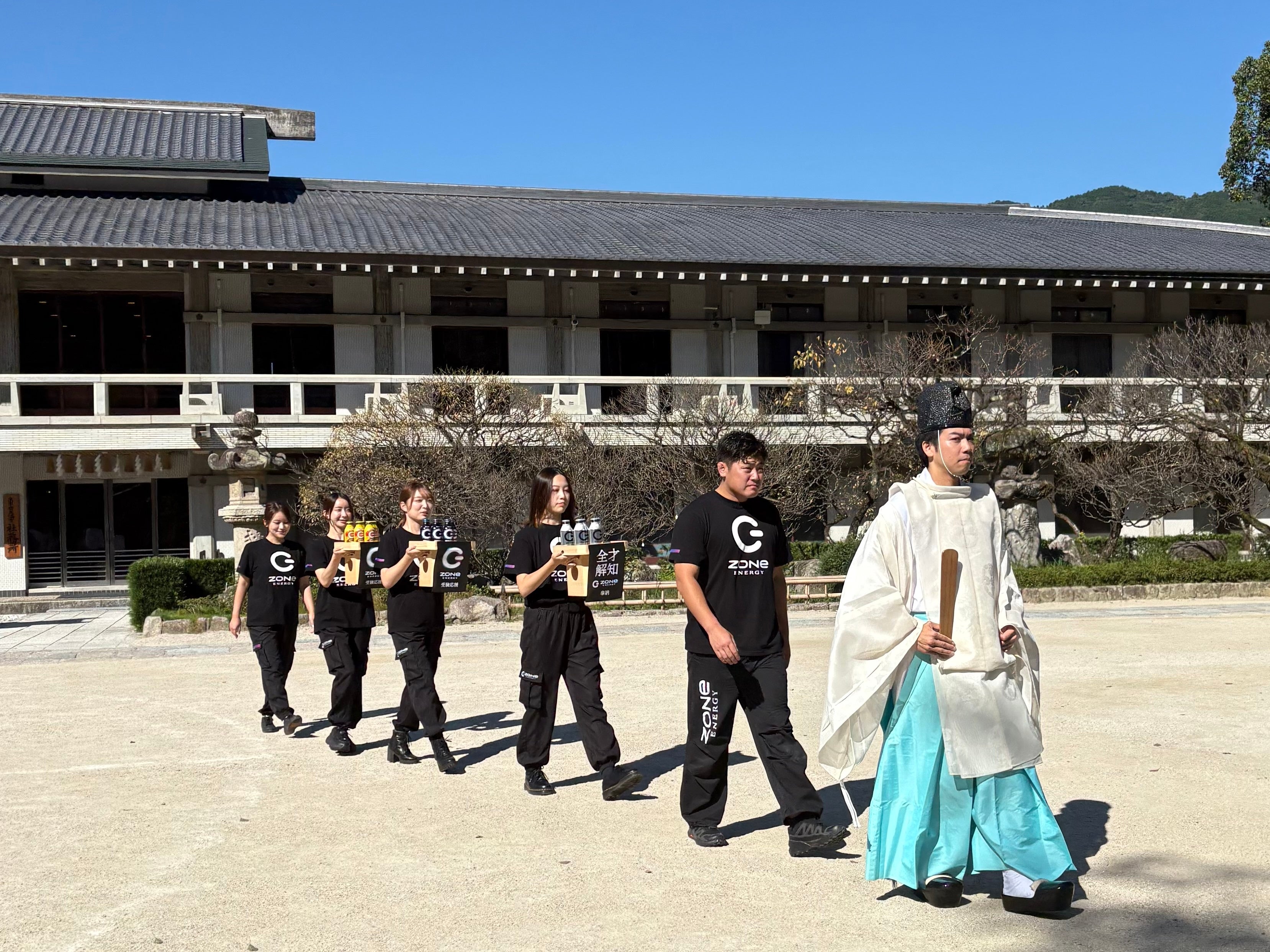 太宰府天満宮への奉納終了後には、合格祈願に訪れていた学生へ「HYPER ZONe」と「ZONe POWER MORNING ENERGY」を配布。より多くのお客様にZONe ENERGYの味わいを体感いただくために活動しているZONe BOOSTERより、学生一人ひとりに受験へのエールを送りながら製品をお渡ししました。今後も「ZONe ENERGY」は、Z世代に最も寄り添うブランドとして、受験生を応援してまいります。
