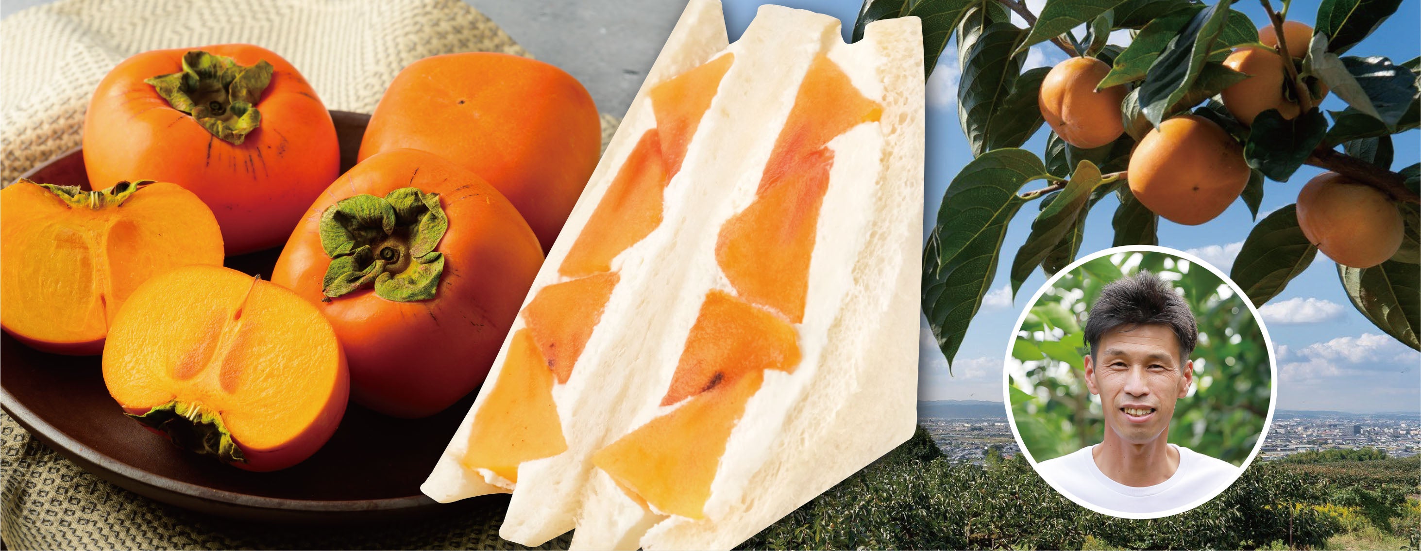 奈良県天理市で約1,000年続く松田果樹園。代々受け継がれた想いと技で育てられた柿は、濃く鮮やかな色合いと驚くほどの甘さが魅力です。みずみずしい甘さを生クリームと一緒に味わう今だけの贅沢なフルーツサンドです。