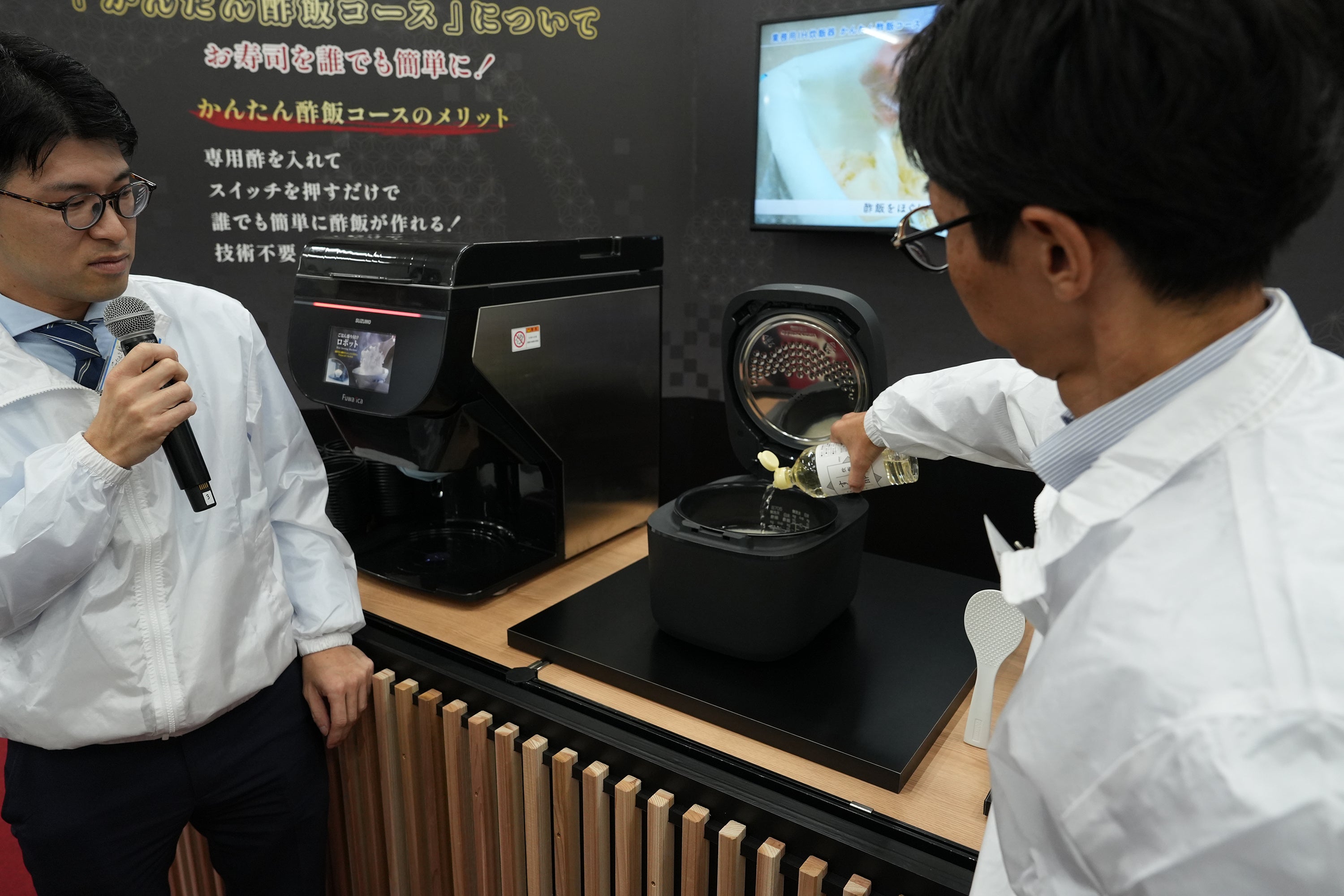 本発表会では、飲食業界が直面する「人手不足」「米価高騰」「外食産業における米飯品質の向上」「食品ロス削減」といった社会課題に対し、米飯加工ロボット市場におけるグローバルニッチトップ企業「鈴茂器工」と家庭用炊飯器大手「象印マホービン」が協業し、新たな価値を創出する取り組みを発表しました。会場では、2026年4月1日に発売予定の共同開発製品である1升炊きの業務用IH炊飯ジャー(NW-QSZ18A)を初公開。本製品は、鈴茂器工が販売およびアフターサービスを行います。